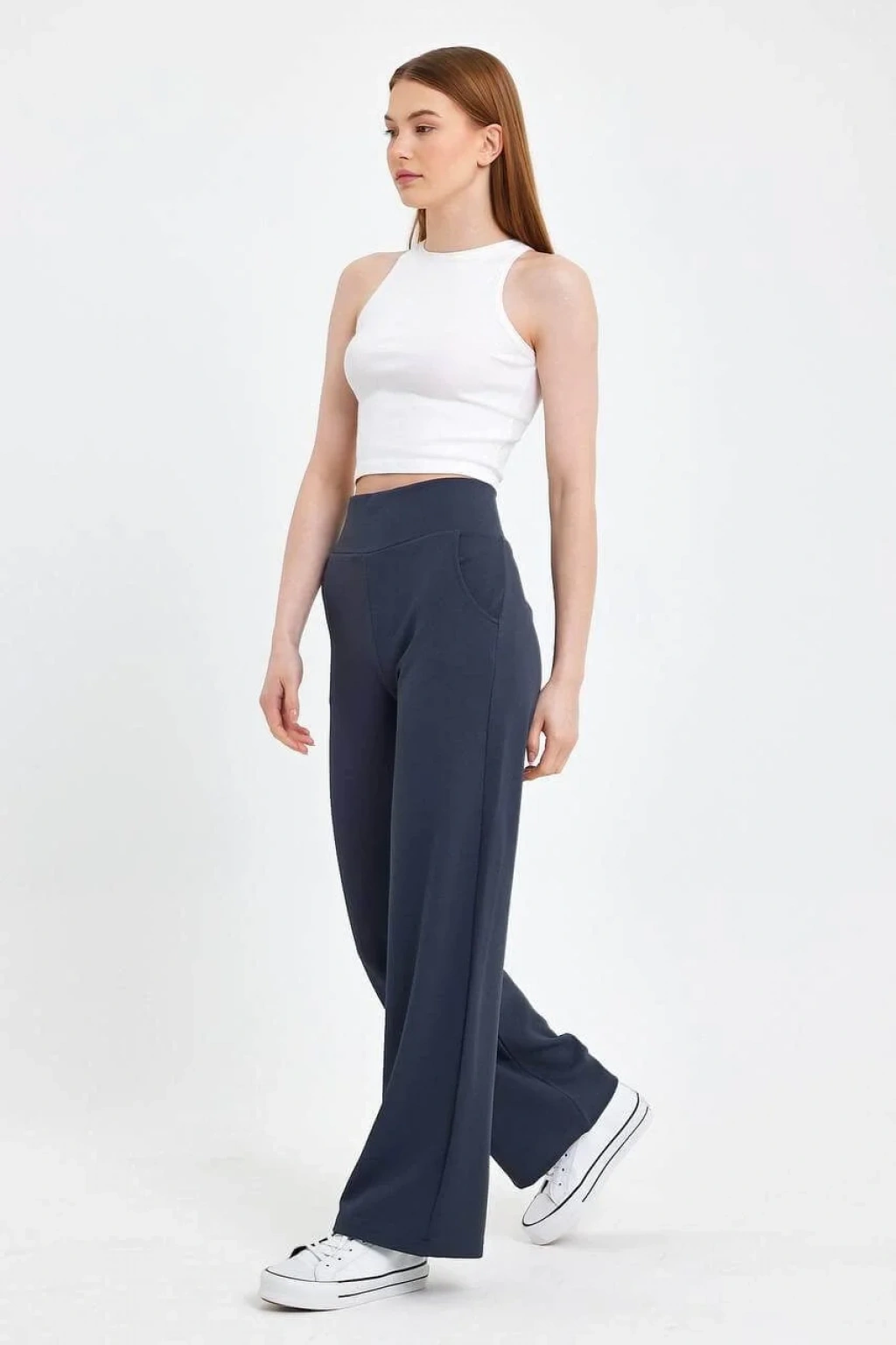 Trend Palazzo Kesim: Bacakları olduğundan uzun gösteren geniş paça (palazzo) kesimi, modern ve dökümlü bir silüet sunar.
