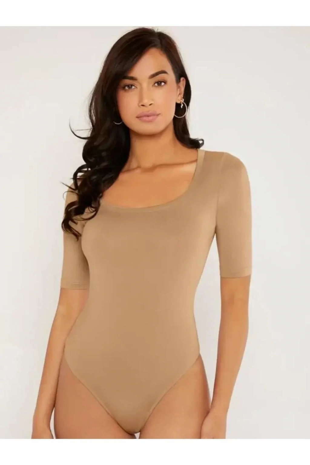 Bu bej U yaka bodysuit, gardırobunuzun en joker parçasıdır. Jean şortlardan kumaş eteklere, blazer ceketlerden hırkalara kadar her parçayla mükemmel uyum sağlar. Hem spor hem de şık kombinlerinizin vazgeçilmezi olacak.