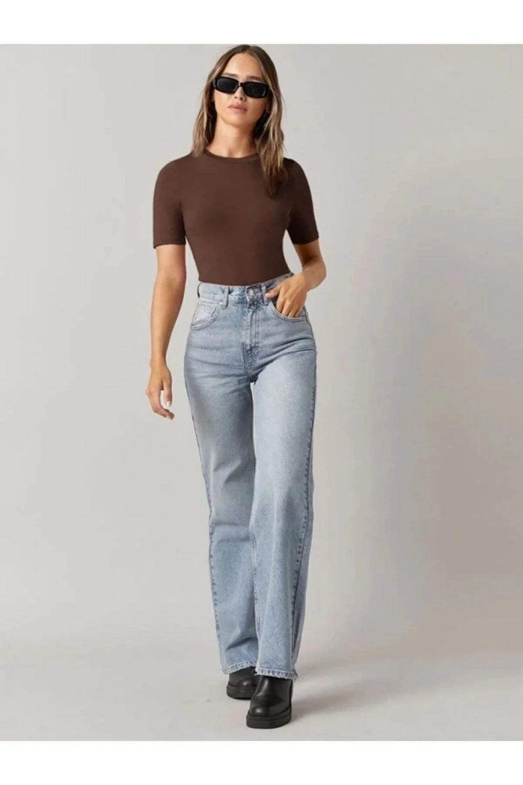 Bu kahverengi bisiklet yaka bodysuit, gardırobunuzun en joker parçasıdır. Jean şortlardan kumaş eteklere, blazer ceketlerden hırkalara kadar her parçayla mükemmel uyum sağlar. Özellikle beyaz, bej ve krem tonlarıyla harika bir kontrast yaratır.