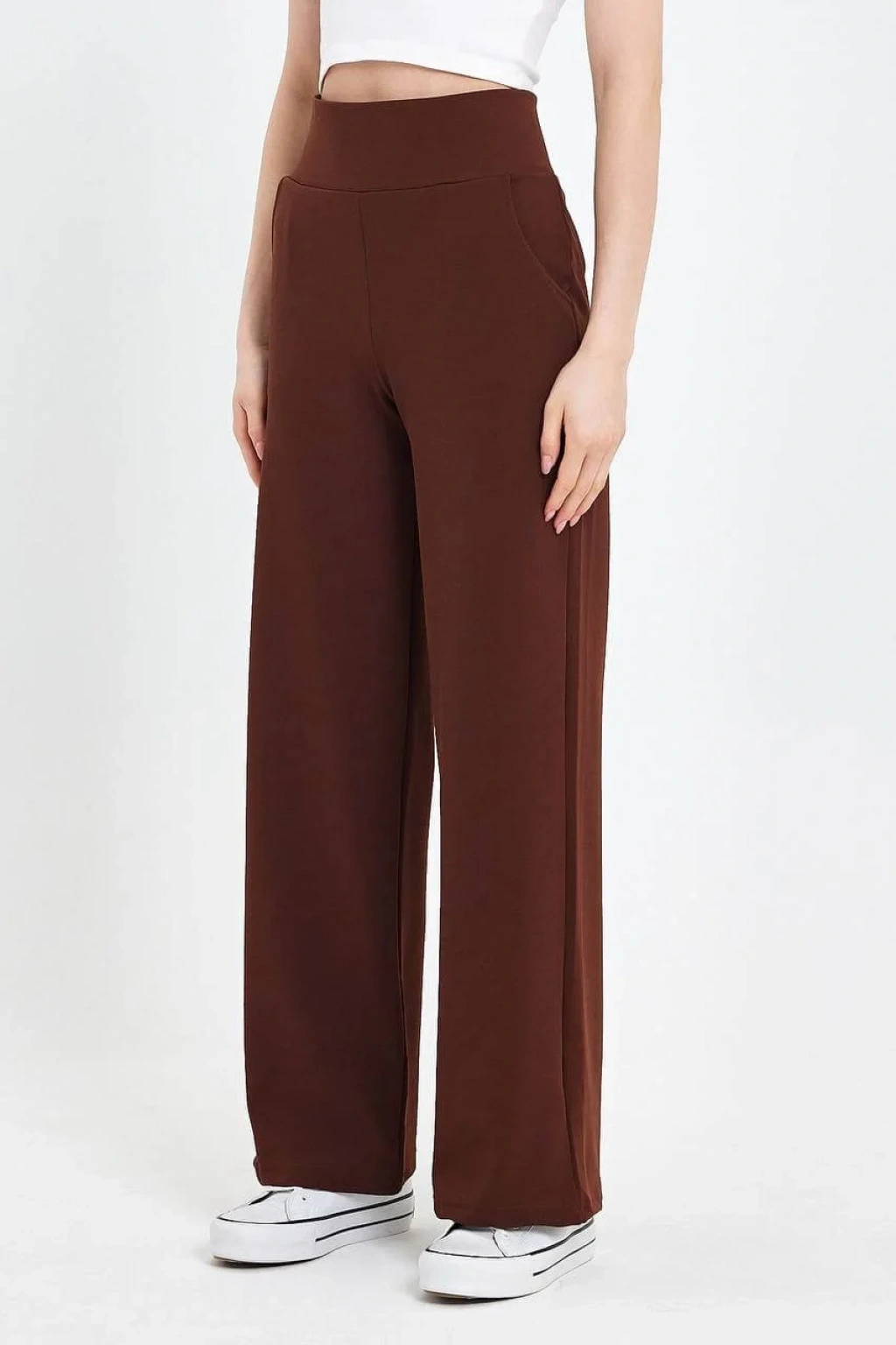 bysoca Kadın Kahverengi Yüksek Bel Palazzo Eşofman Altı, konforu ve şıklığı bir araya getirerek hem günlük koşuşturmacada hem de rahat anlarınızda stilinizi tamamlıyor. Modern kesimi ve kaliteli kumaşıyla gardırobunuzun vazgeçilmezi olacak.