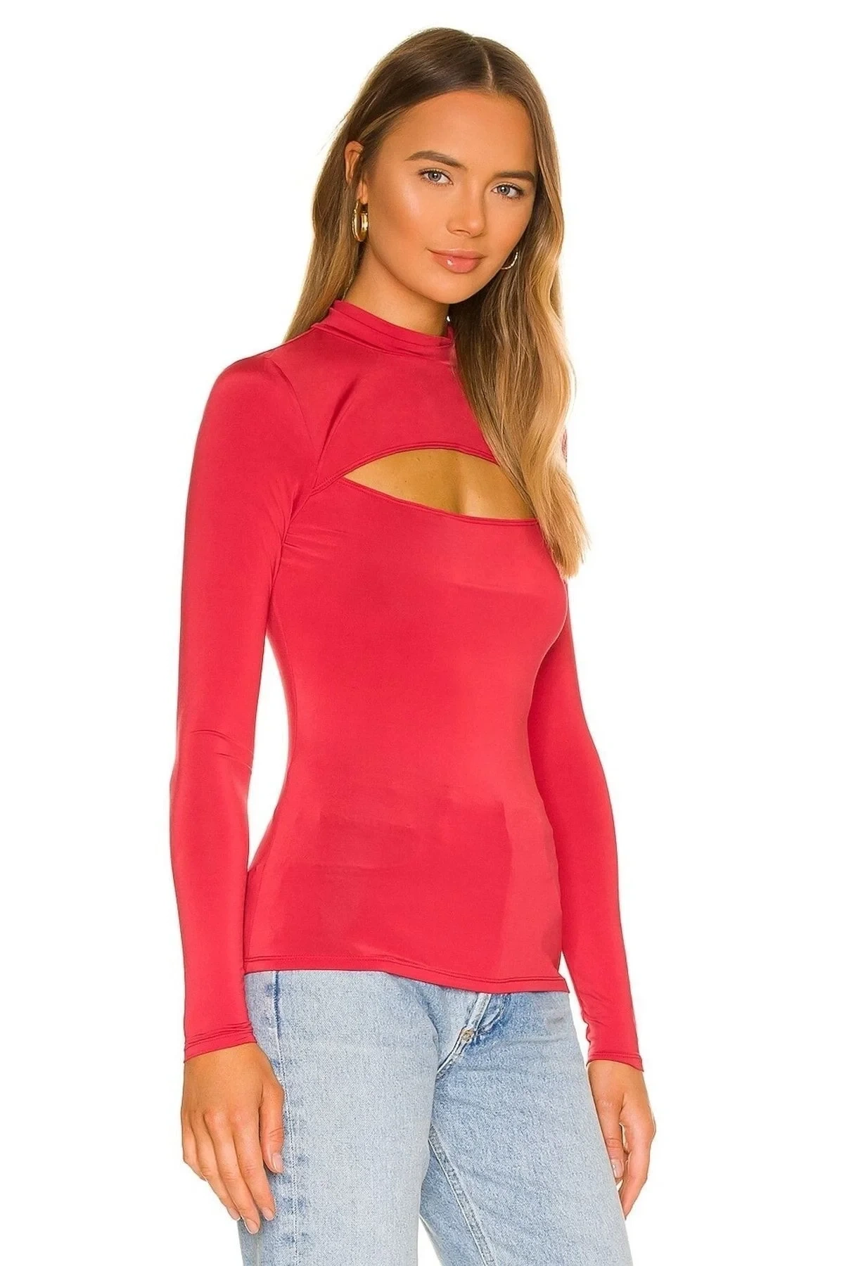 Bu kırmızı dekolteli bluz, iddialı ve modern bir stilin anahtar parçasıdır. Yüksek bel deri pantolonlar, saten etekler veya siyah kumaş pantolonlarla kombinleyerek sofistike bir gece şıklığı yaratabilirsiniz. Tasarımın gücünü ortaya çıkarmak için minimal aksesuarlar tercih edebilirsiniz.