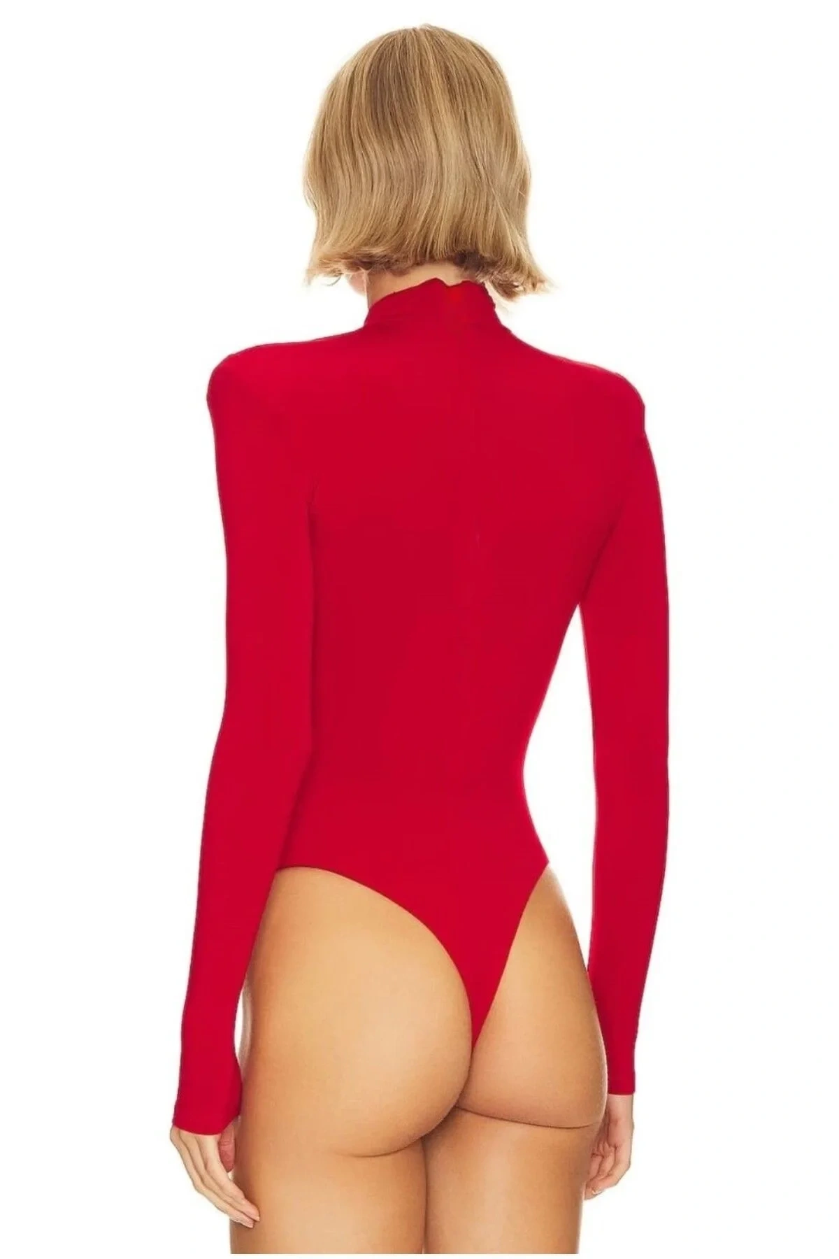 bysoca Kadın Kırmızı Balıkçı Yaka Vatkalı Bodysuit, modern ve güçlü bir silüet yaratmak için tasarlandı. Vatkalı omuzları, beli vurgulayan büzgü detayı ve vücudu şekillendiren kumaşıyla hem konforlu hem de son derece iddialı bir temel parça.