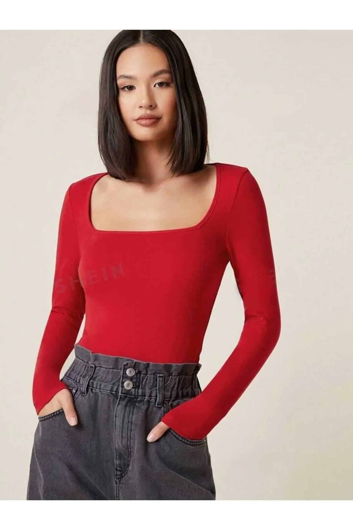 bysoca Kadın Kırmızı Kare Yaka Uzun Kollu Body, modern zarafeti ve konforu bir araya getiren vazgeçilmez bir temel parça. Her kombine anında şıklık katan bu body, gardırobunuzun en kullanışlı üyelerinden biri olacak.
