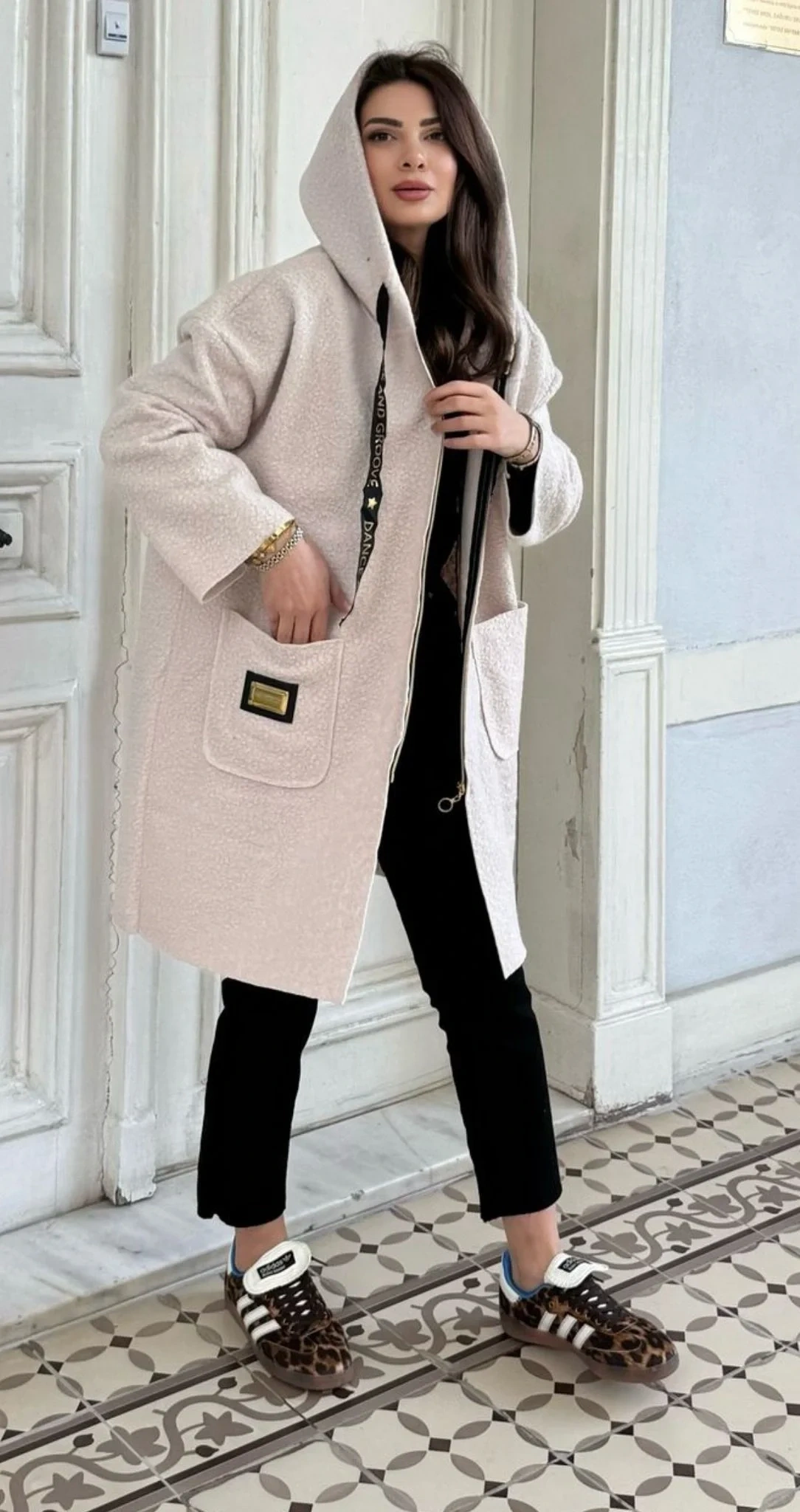 bysoca Kadın Krem Kapüşonlu Oversize Buklet Kaban Hırka, soğuk havalarda konforu ve stili bir araya getiriyor. Hem sıcak tutan yapısı hem de modern detaylarıyla bu krem kaban, gündelik stilinizin vazgeçilmezi olacak.