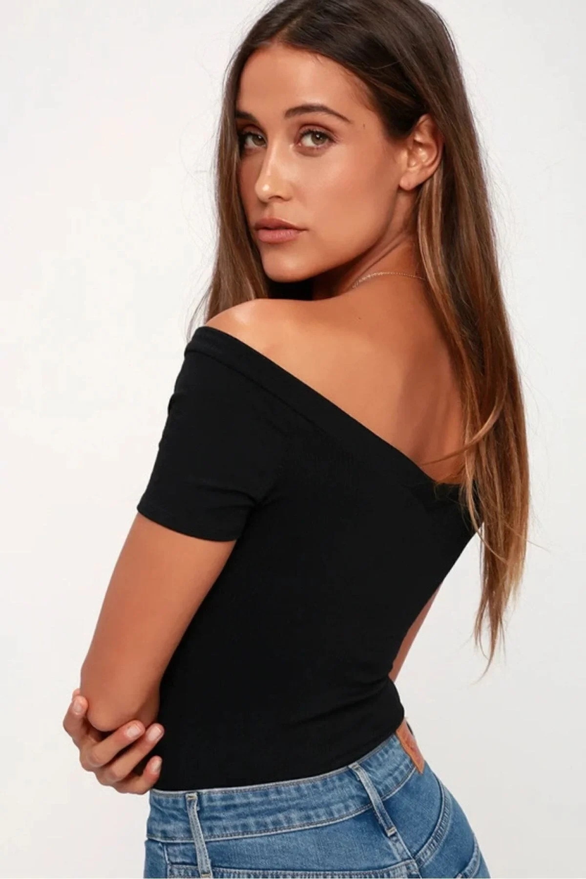 Bu siyah düşük omuz bodysuit, modern ve romantik bir şıklık arayanlar için mükemmel bir seçim. Yüksek bel bir jean ile gündelik, şık bir etekle ise özel günler için harika kombinler yaratabilirsiniz.