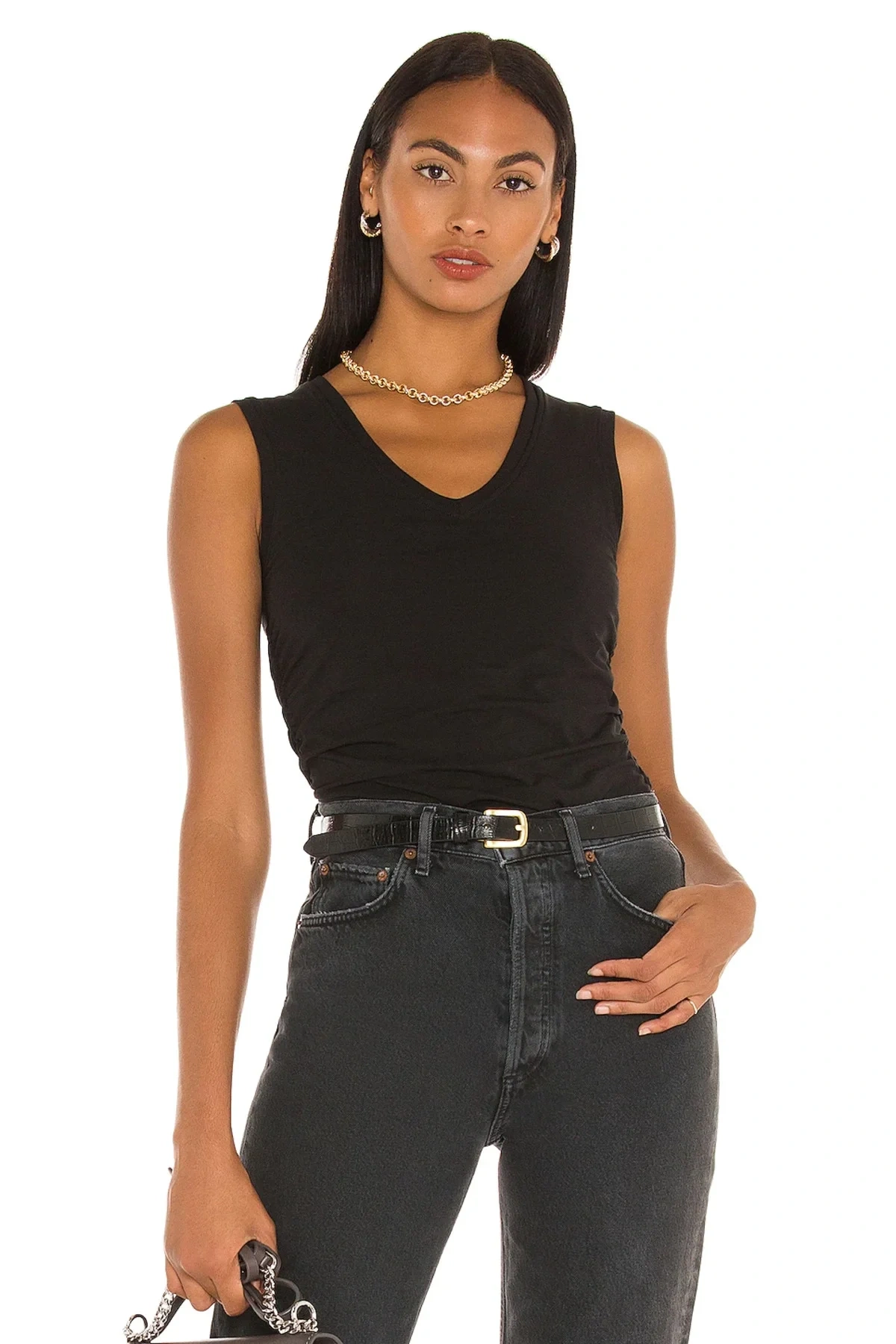 Bu siyah V yaka bluz, gardırobunuzun en joker parçasıdır. Jean şortlardan kumaş eteklere, blazer ceketlerden hırkalara kadar her parçayla mükemmel uyum sağlar. Hem spor hem de şık kombinlerinizin vazgeçilmezi olacak.