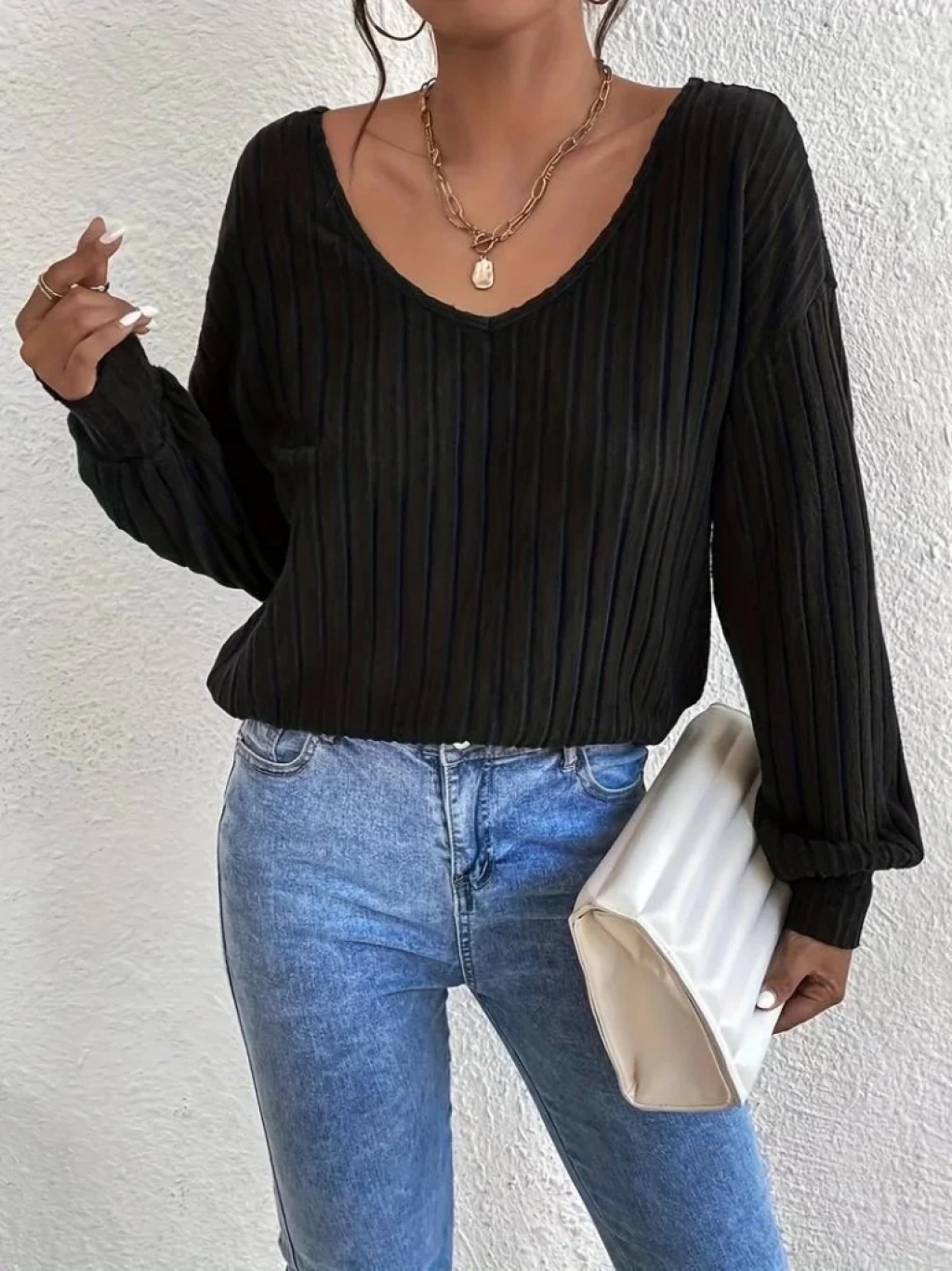bysoca Kadın Sırtı Dantel Detaylı Kaşkorse Bluz, klasik V yaka trikoyu, beklenmedik ve baştan çıkarıcı bir sırt detayıyla birleştiriyor. Gündüzden geceye kolayca geçiş yapabilen bu parça, hem rahatlığı hem de sofistike cazibeyi bir arada sunuyor.