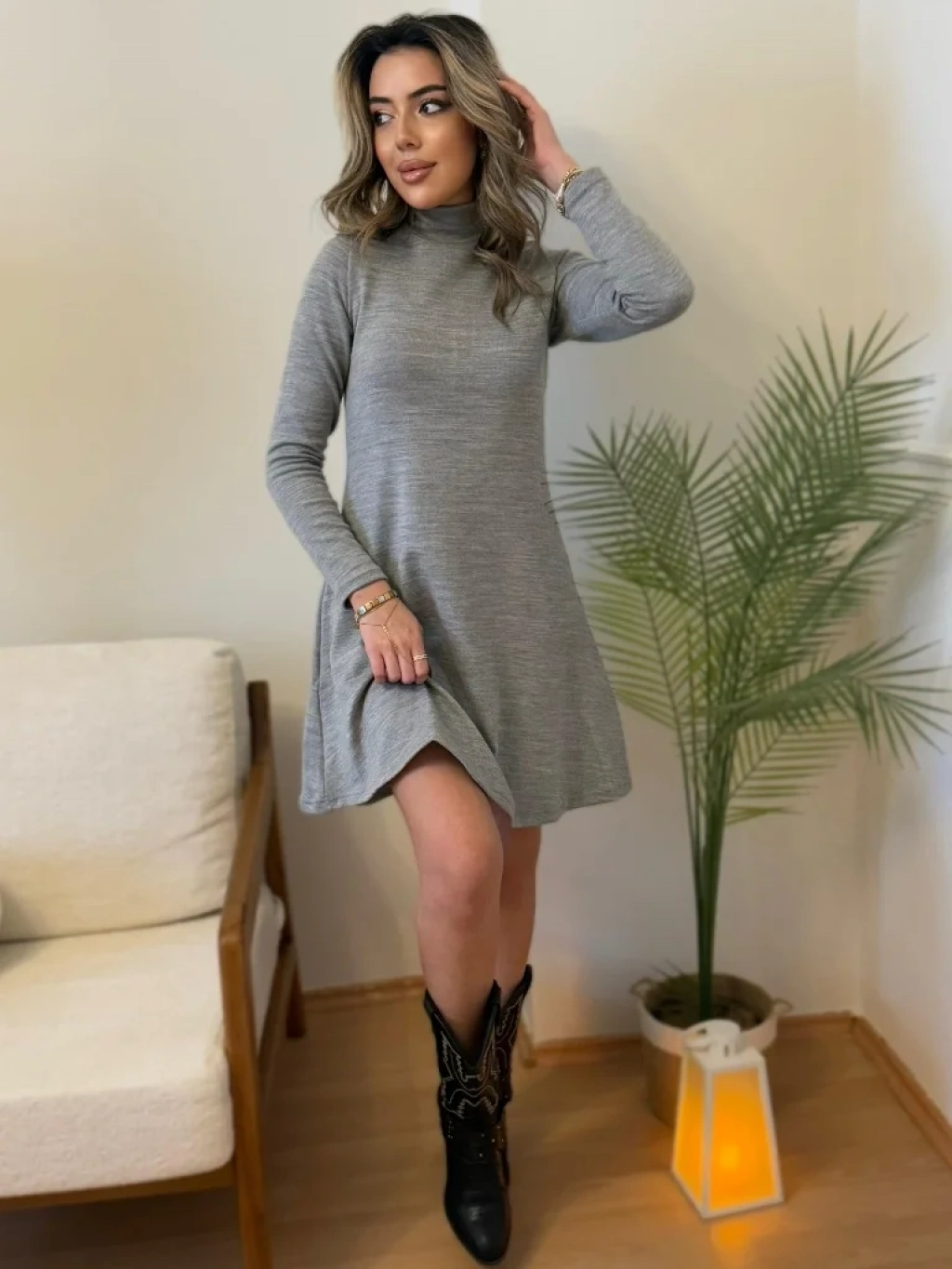 Bu balıkçı yaka triko elbise, zahmetsiz bir kış şıklığı sunar. Uzun çizmelerle kombinleyerek modern ve stil sahibi bir görünüm elde edebilir, beline takacağınız bir kemerle silüetinizi daha da vurgulayabilirsiniz. Tek parça ile hem sıcak kalıp hem de şık görünmek için idealdir.