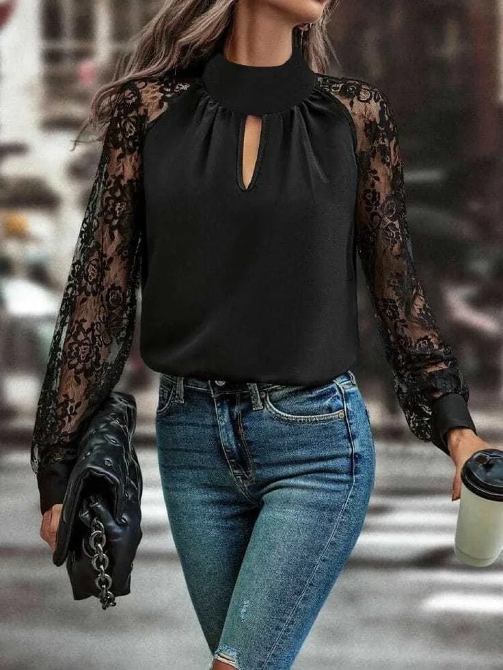 Bu dantel kollu bluz, şıklığı ve rahatlığı birleştiren çok yönlü bir parçadır. Jean pantolonlarla kombinleyerek günlük stilinize zarafet katabilir, kumaş pantolon veya eteklerle tamamlayarak özel bir davete veya şık bir akşam yemeğine katılabilirsiniz.