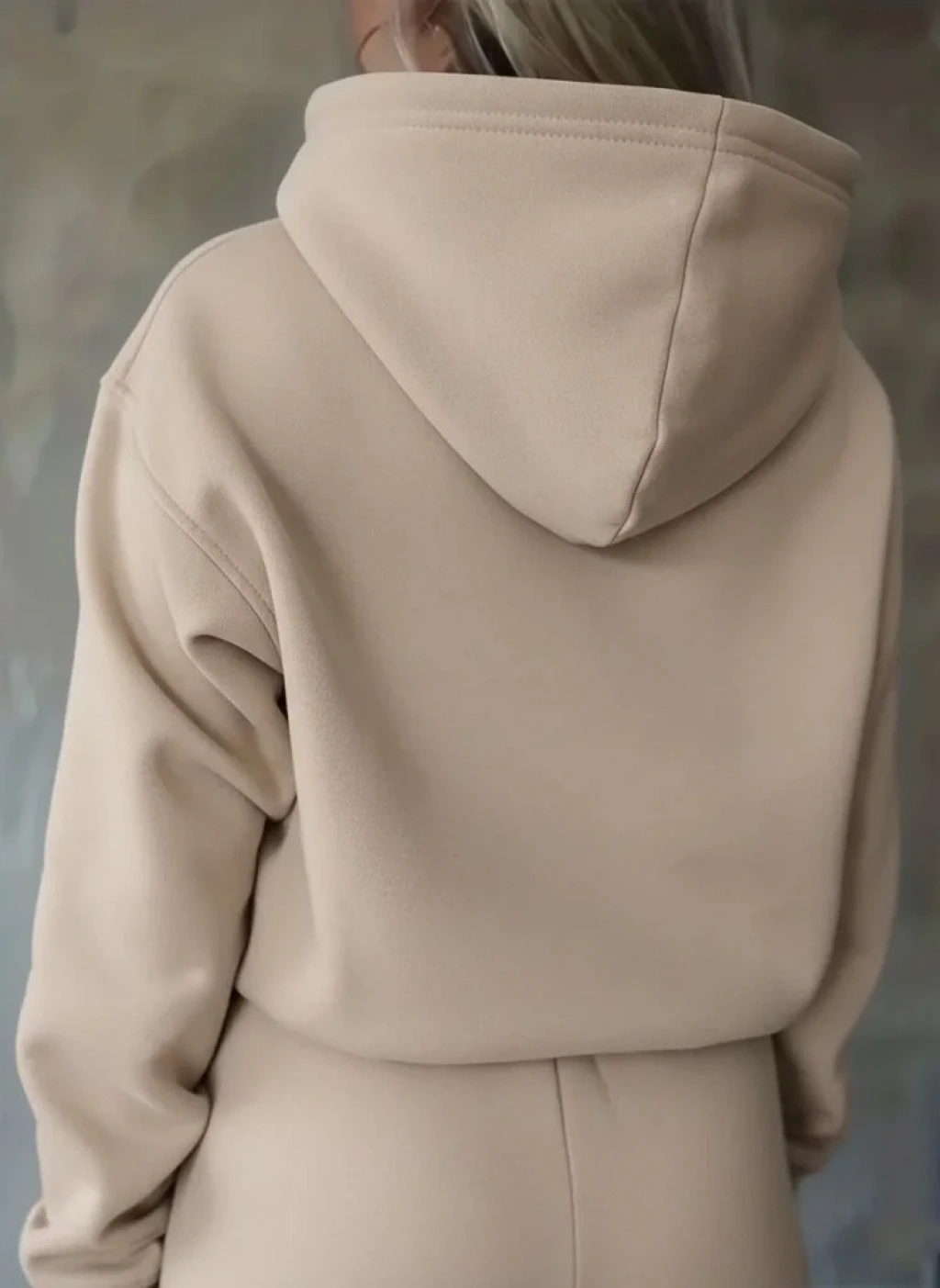 Konforlu Kumaş ve Kalıp: Yumuşak ve rahat kumaşı, salaş kesim crop sweatshirt ve geniş paça pantolon ile birleşerek gün boyu maksimum konfor sağlar.
