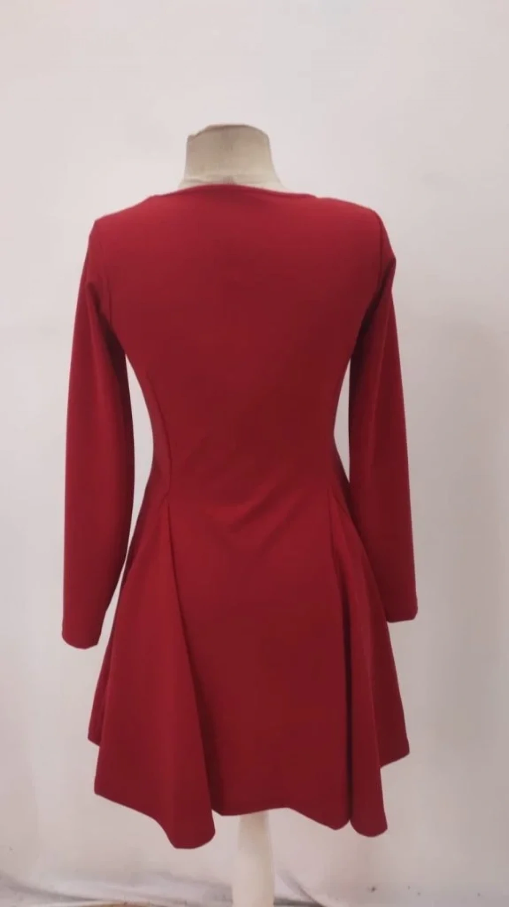 Bu kırmızı mini elbise, çok yönlü bir parçadır. Topuklu ayakkabılar ve şık bir clutch ile klasik bir davet görünümü, opak çorap ve botlarla ise havalı bir kış stili yaratabilirsiniz. Her kadının gardırobunda olması gereken zamansız bir modeldir.
