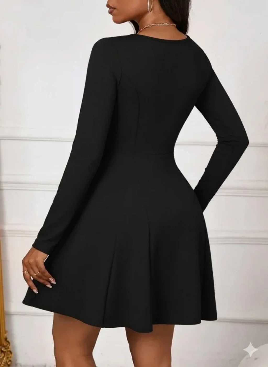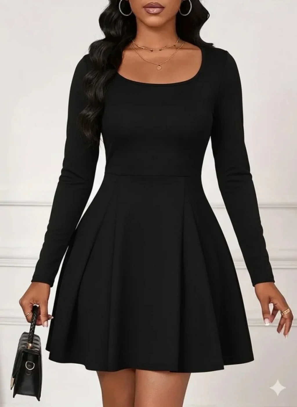 bysoca Kadın Uzun Kollu Kare Yakalı Mini Elbise, klasik siyah elbise zarafetini, modern ve feminen bir kesimle birleştiriyor. Hem gündüz hem de gece şıklığına kolayca uyum sağlayan bu zamansız parça, gardırobunuzun en kullanışlı elbiselerinden biri olacak.