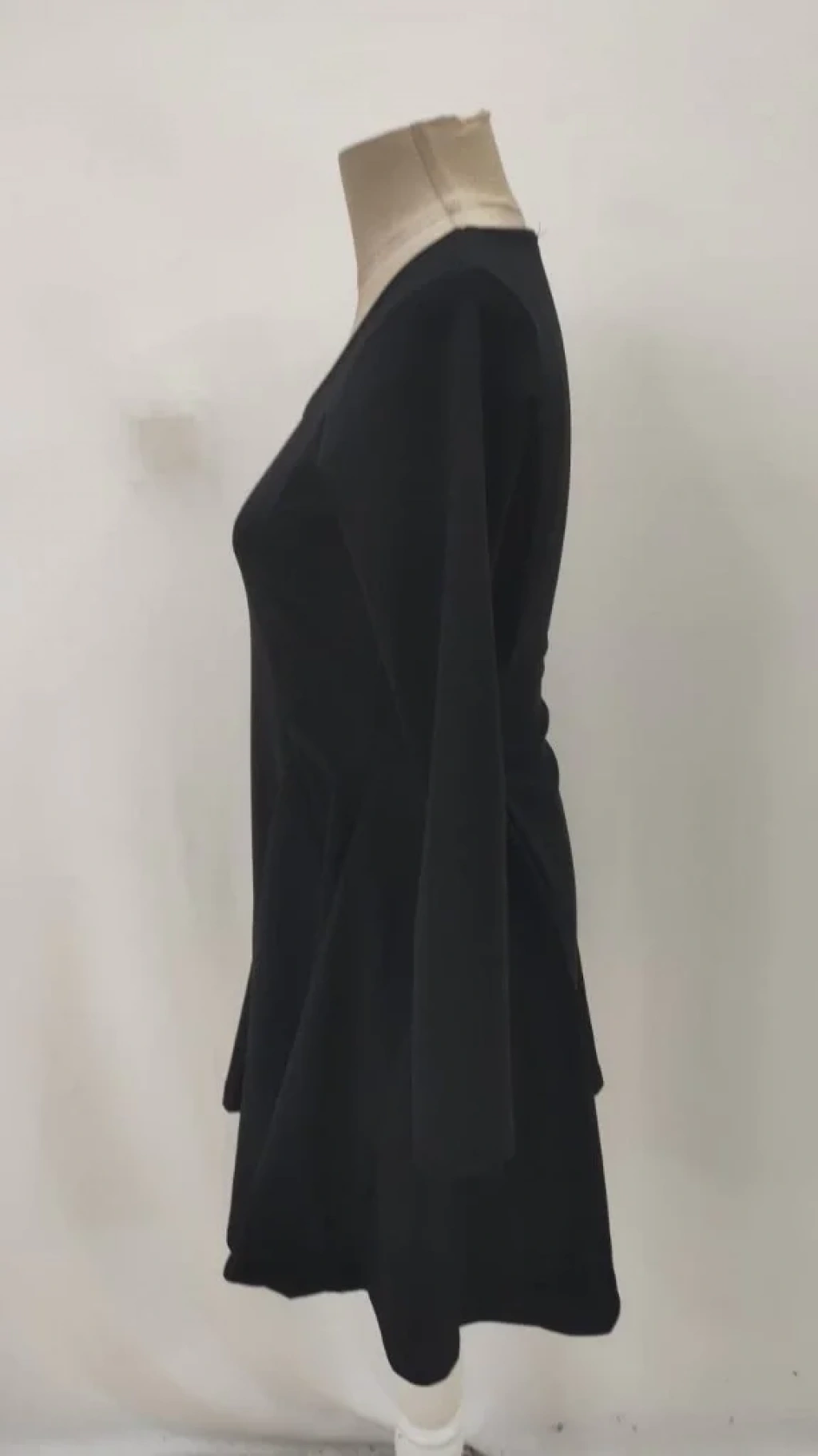 Bu siyah mini elbise, çok yönlü bir parçadır. Topuklu ayakkabılar ve şık bir clutch ile klasik bir davet görünümü, opak çorap ve botlarla ise havalı bir kış stili yaratabilirsiniz. Her kadının gardırobunda olması gereken zamansız bir modeldir.