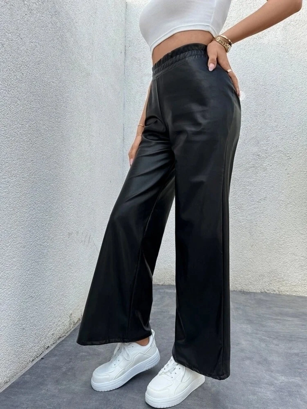 bysoca Kadın Yüksek Bel Beli Lastikli Geniş Paçalı Deri Pantolon, sokak modasının en trend parçalarından birini, maksimum konforla buluşturuyor. Derinin asi ve şık duruşunu, rahat kalıbıyla birleştiren bu pantolon, gardırobunuzun en havalı ve çok yönlü parçası olacak.