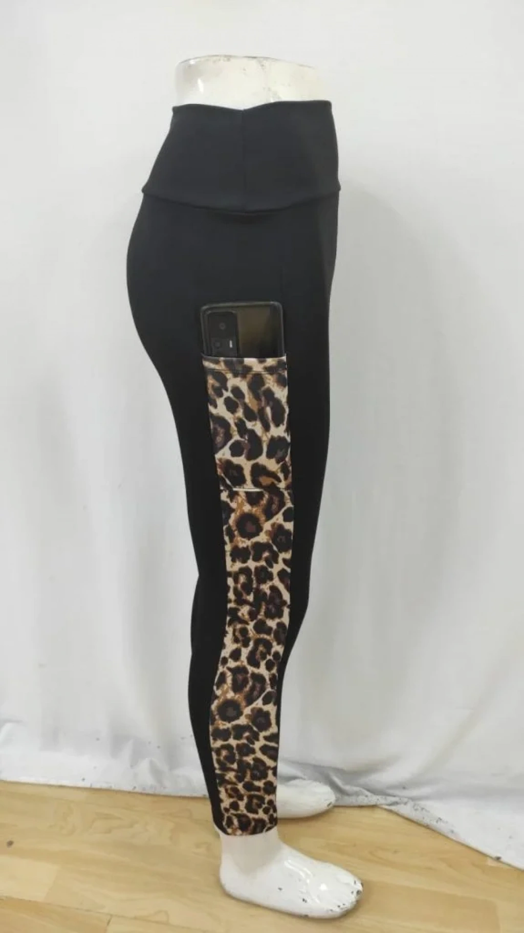 Dinamik Leopar Şerit: Bacakların yanından aşağıya doğru inen leopar desenli şerit, sade siyah tayta modern ve iddialı bir dokunuş katar.