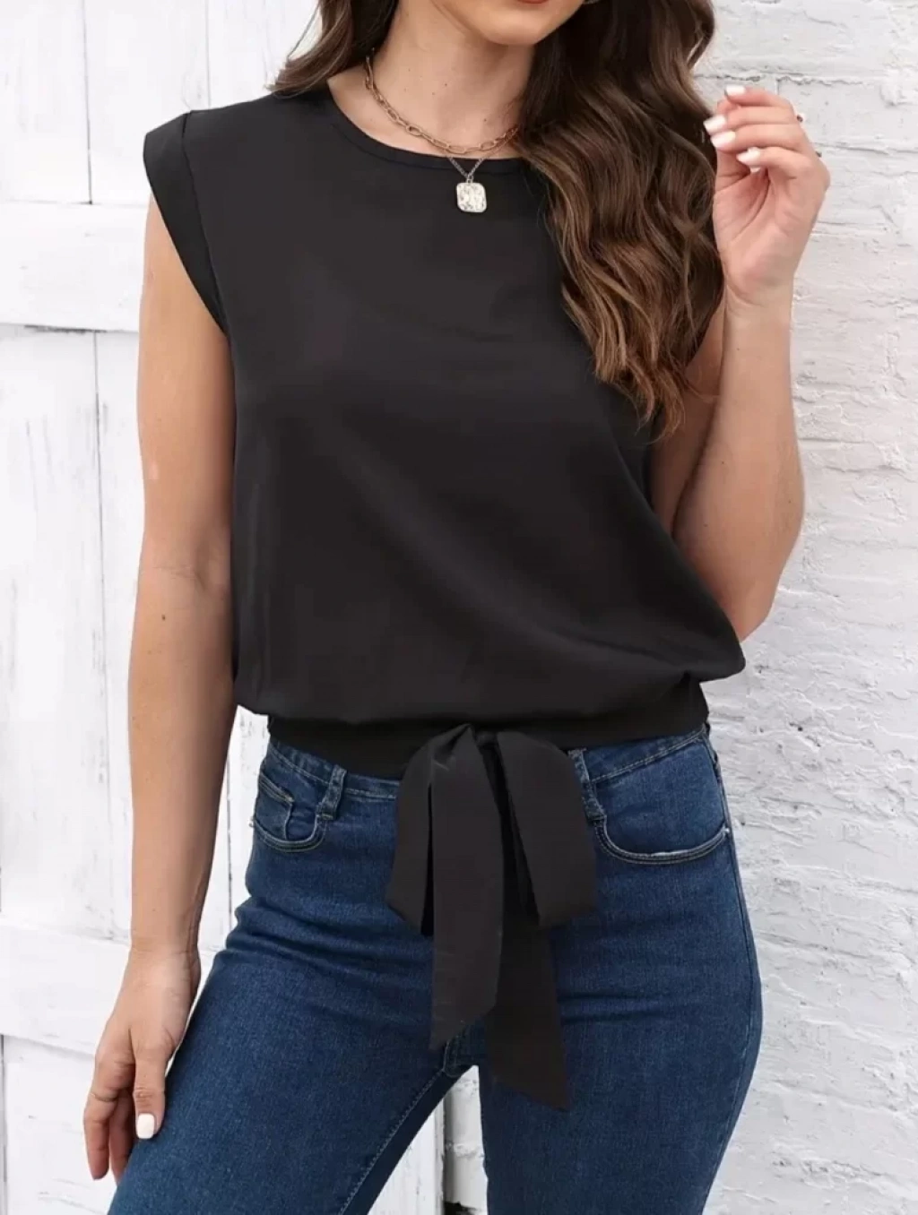 Kadın Sıfır Kol Etek Ucu Bağlama Detay Ithal Krep Bluz