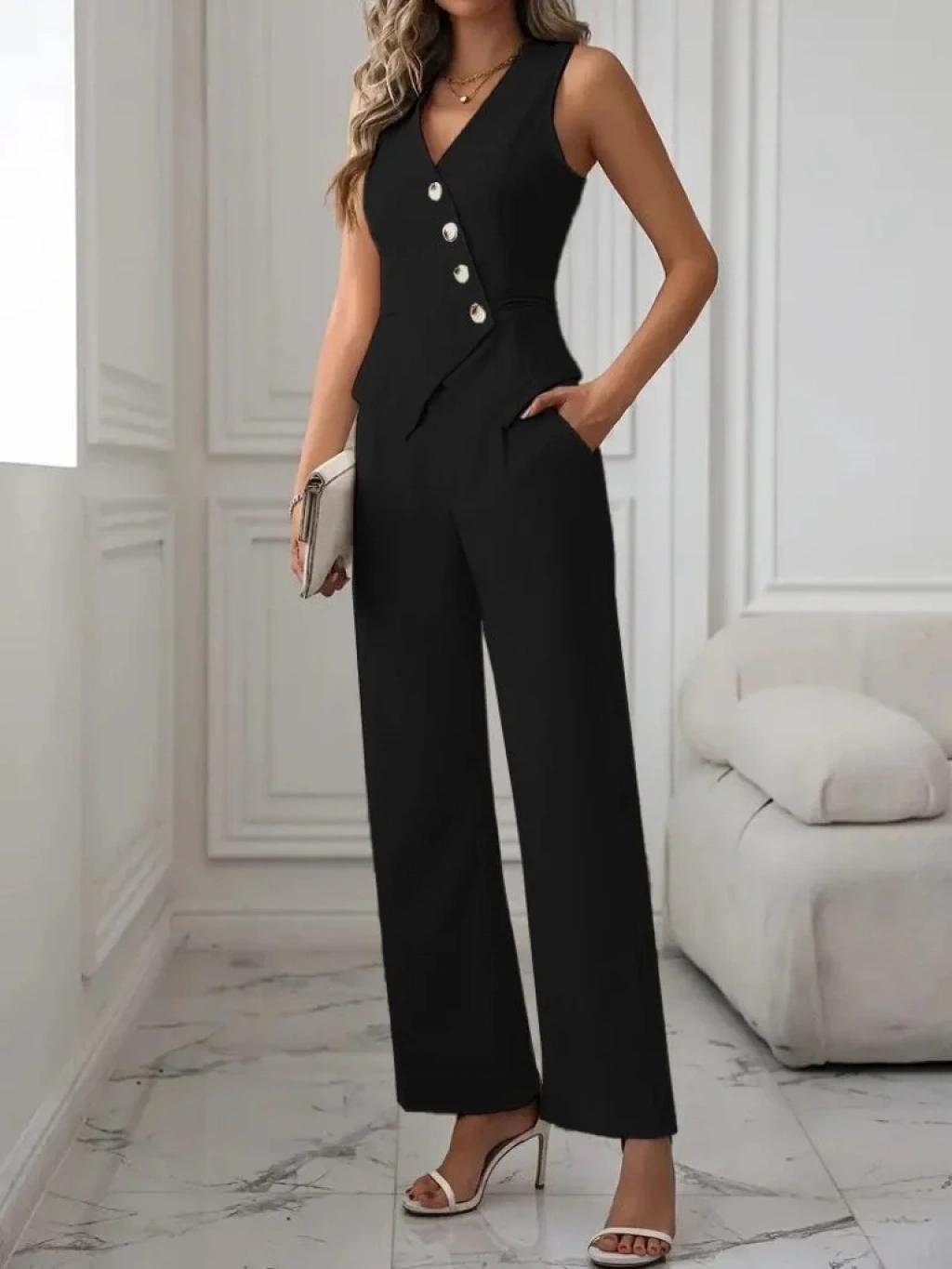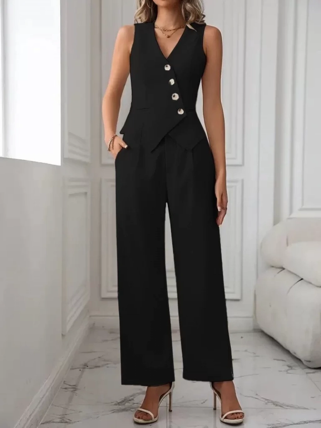 Kadın Sıfır Kollu çapraz V Yakalı önden Düğmeli Atlas Yelek Ve Pantolon Ikili Takım