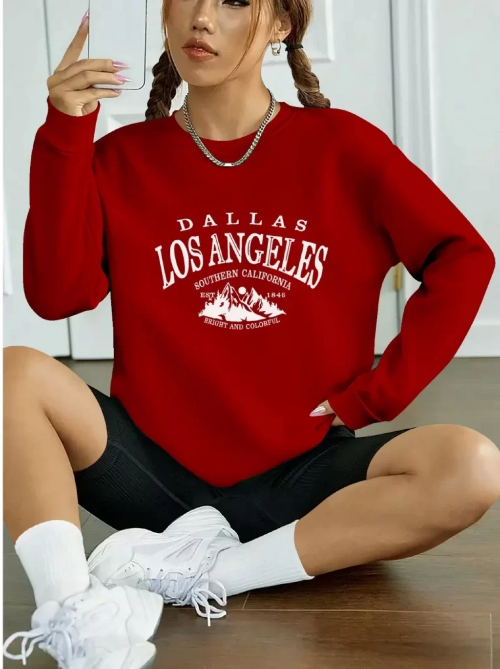 Kadın Uzun Kollu Bisiklet Yaka Viskon Iki Iplik Bluz