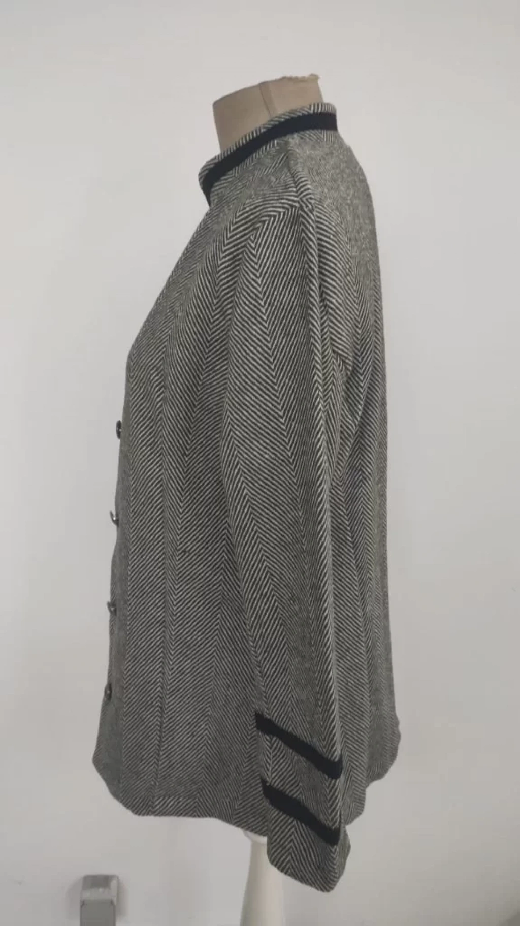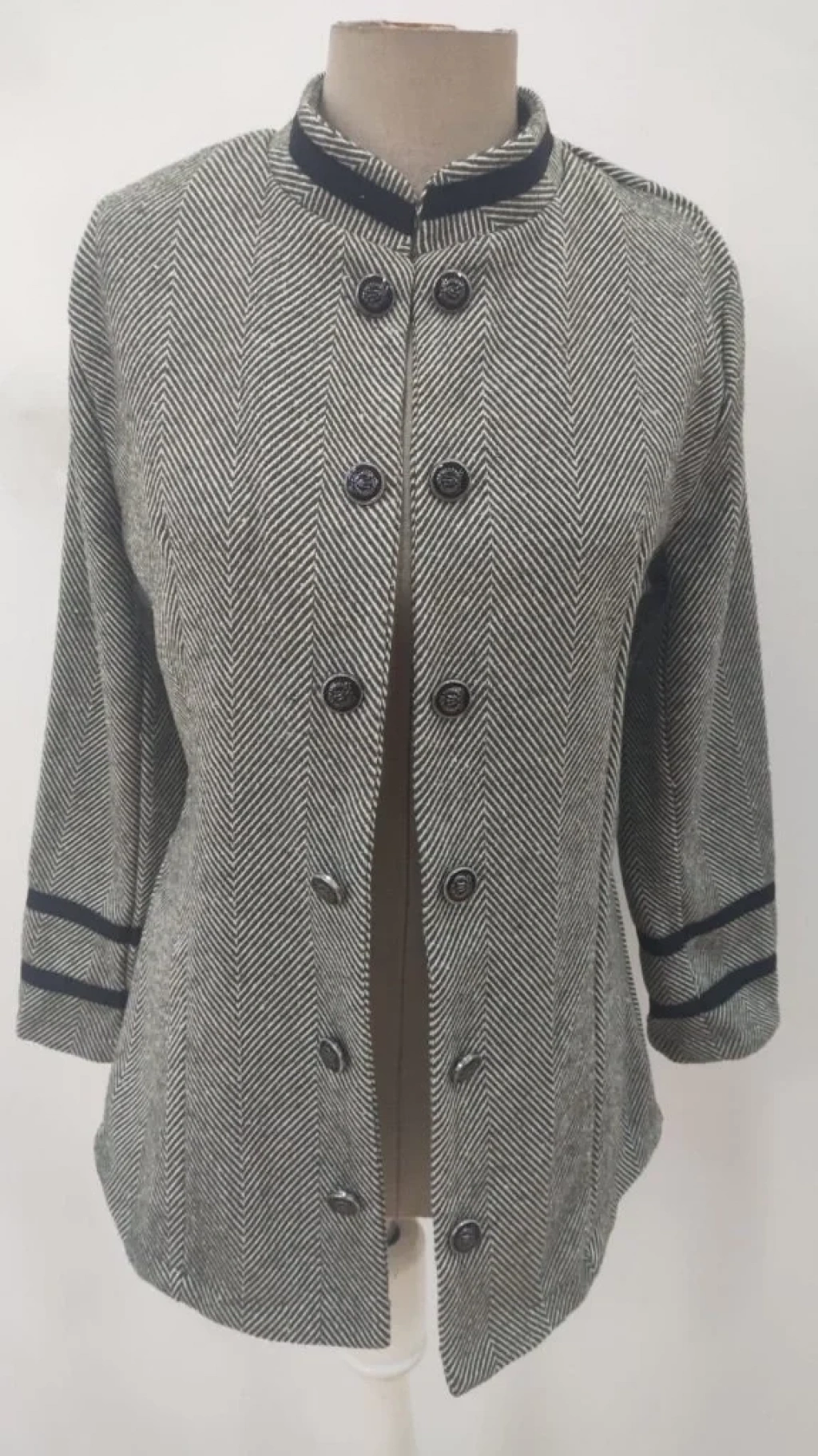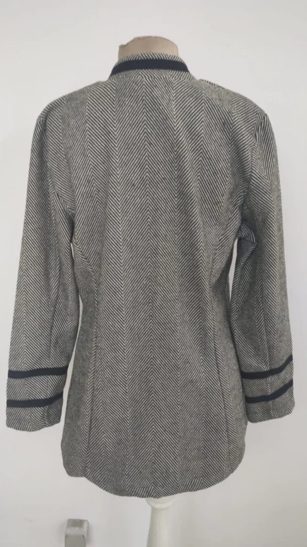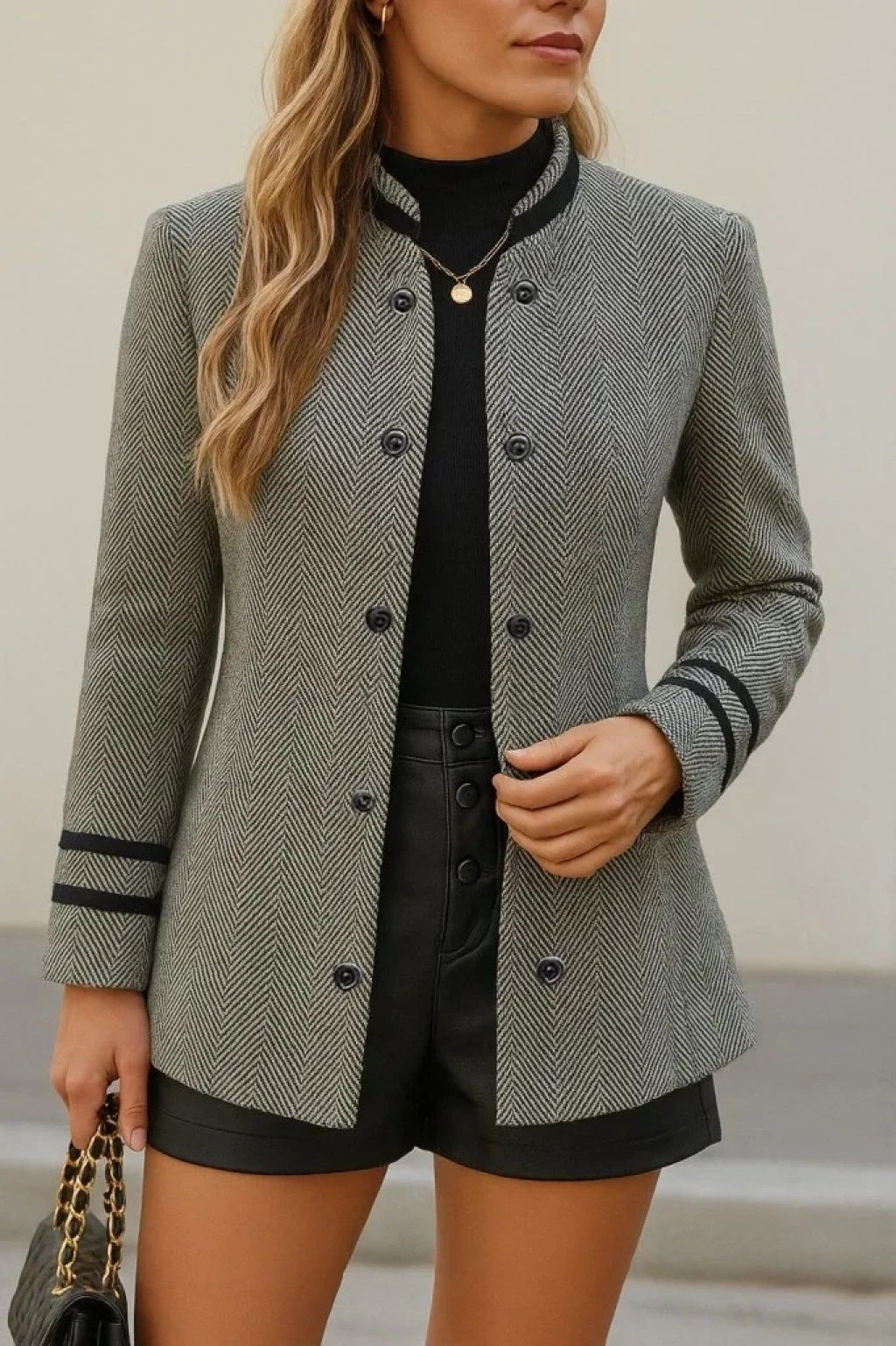 bysoca Kadın Hakim Yaka Kontrast Biyeli Boydan Düğmeli Uzun Kollu Tüvit Ceket - Siyah Beyaz