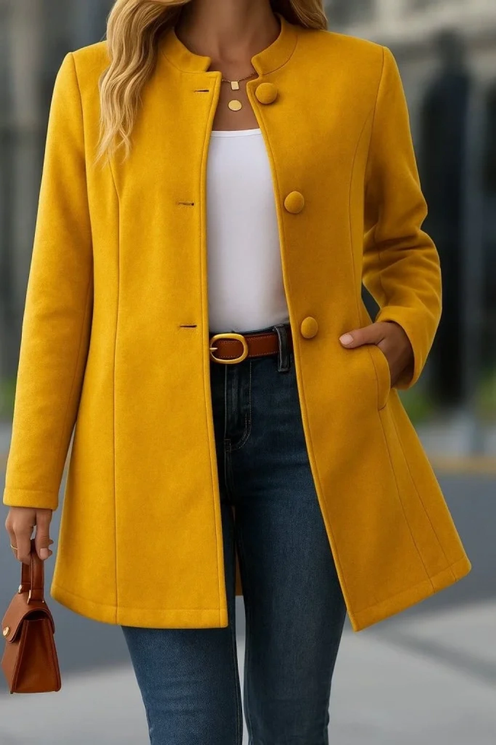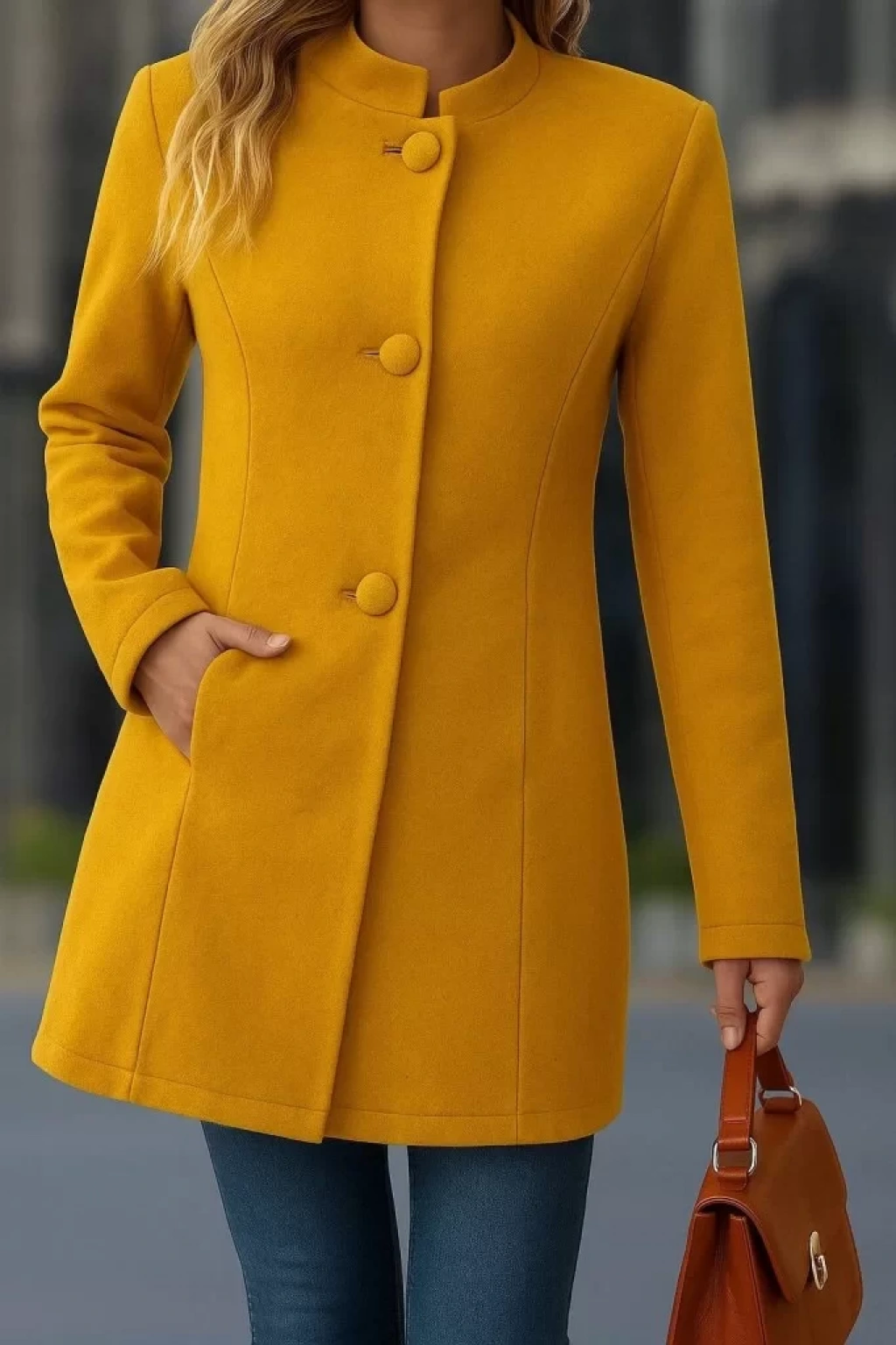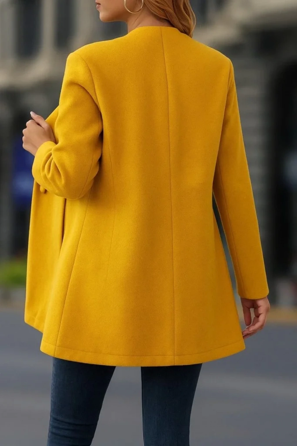 Kadın Uzun Kollu Hakim Yakalı önden Düğmeli Cep Detaylı Kısa Kaşe Kaban