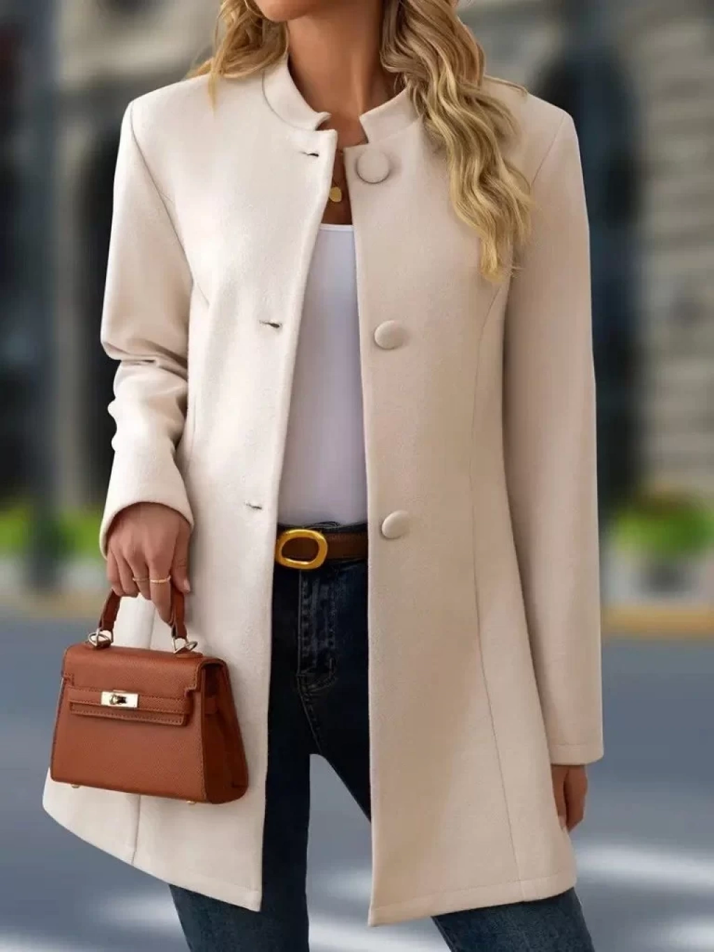 Kadın Uzun Kollu Hakim Yakalı önden Düğmeli Cep Detaylı Kısa Kaşe Kaban