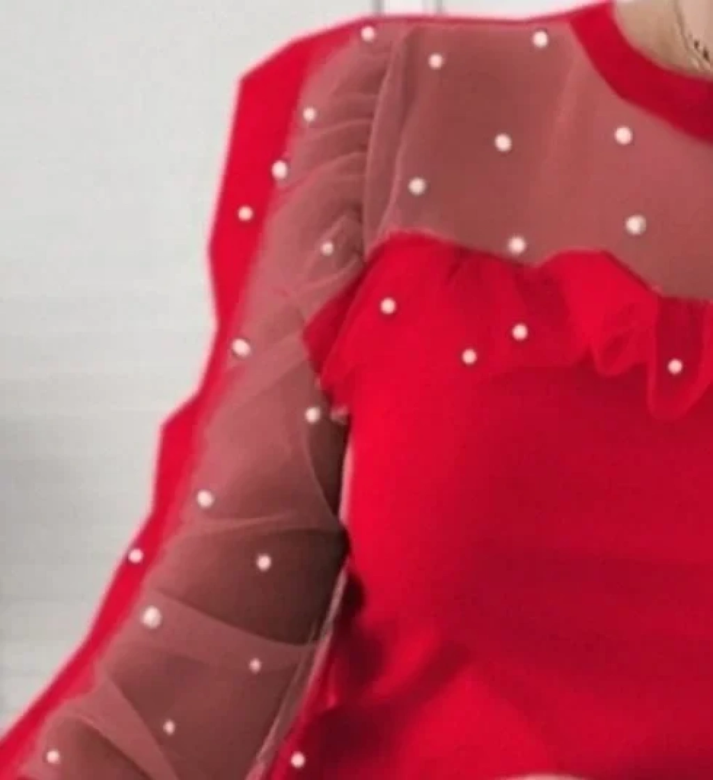 Kadın Uzun Kollu Inci Detaylı Tüllü Viskon Bluz
