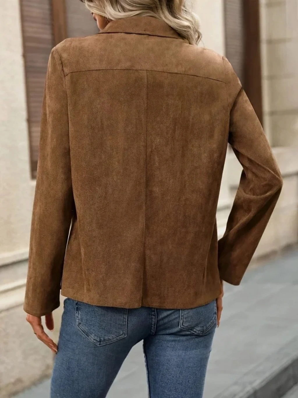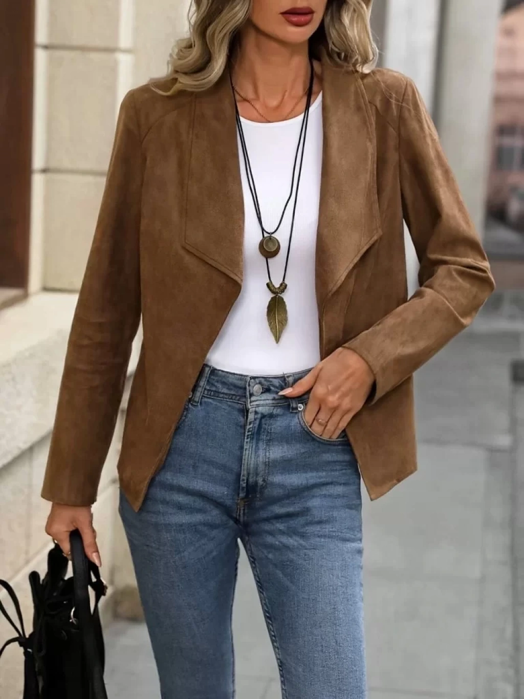 Kadın Uzun Kollu önü Açık Yakalı Süet Ceket