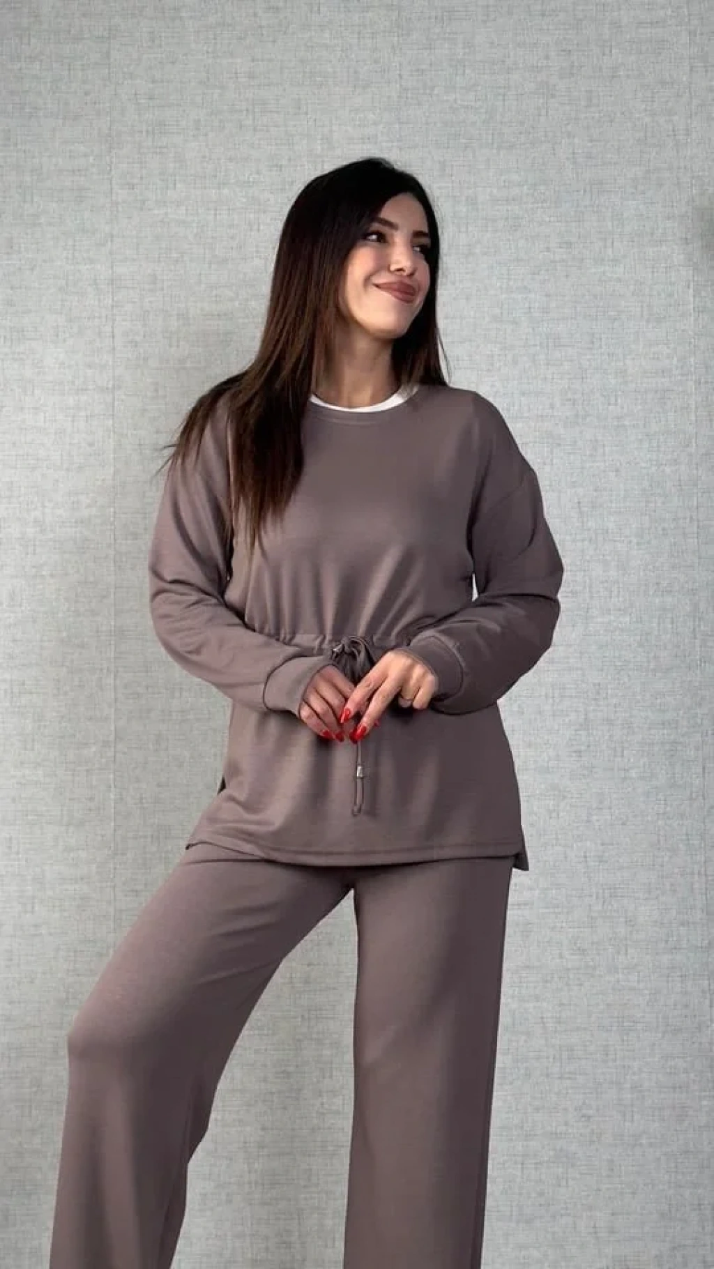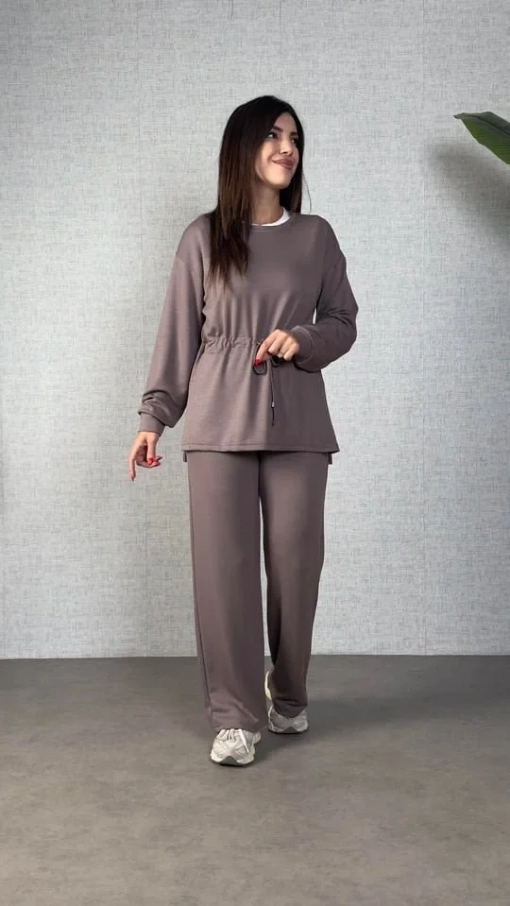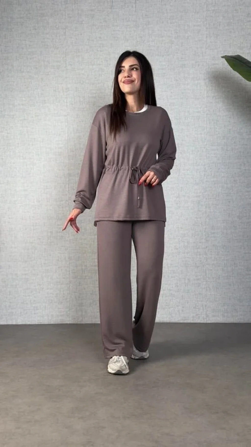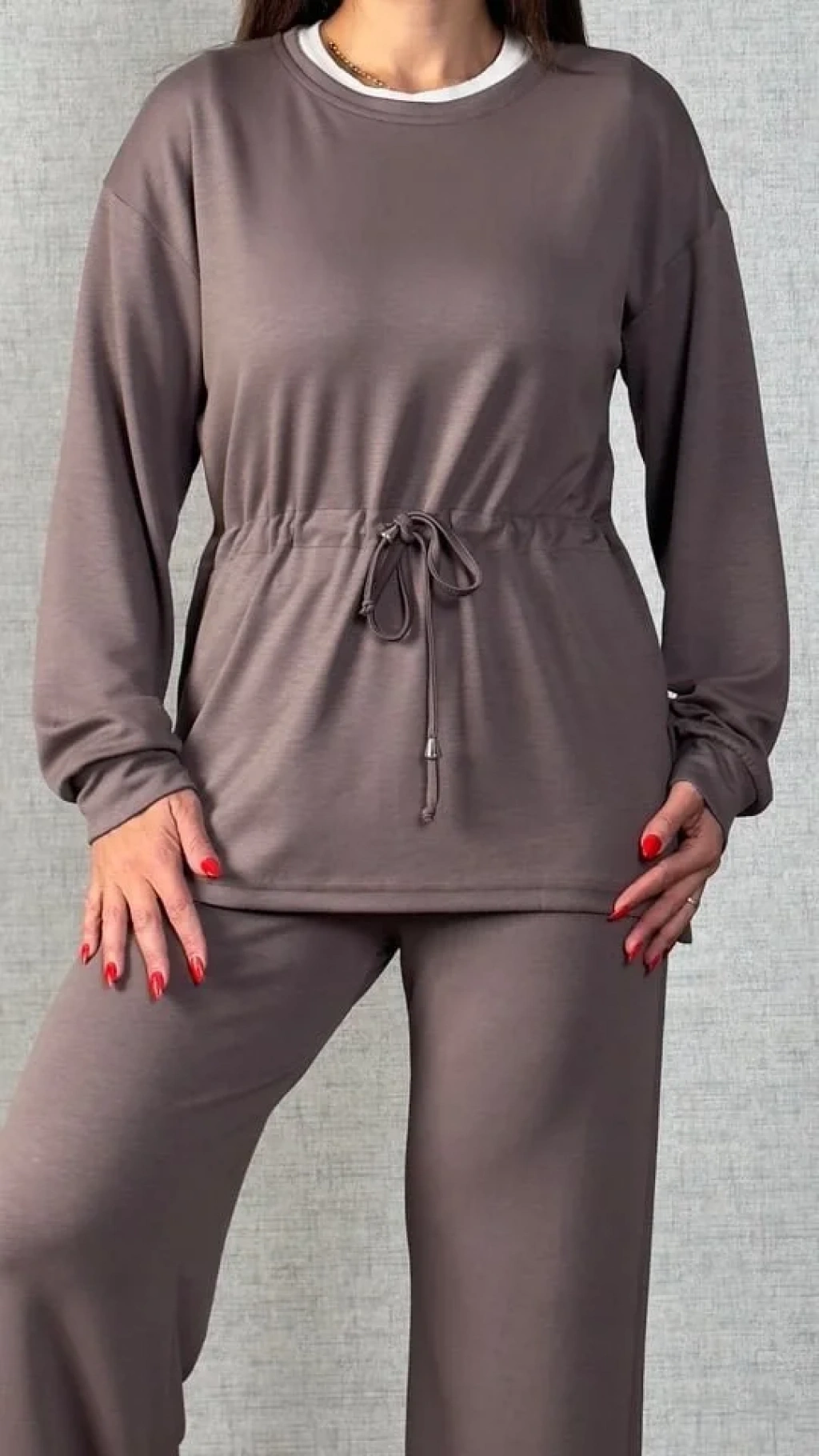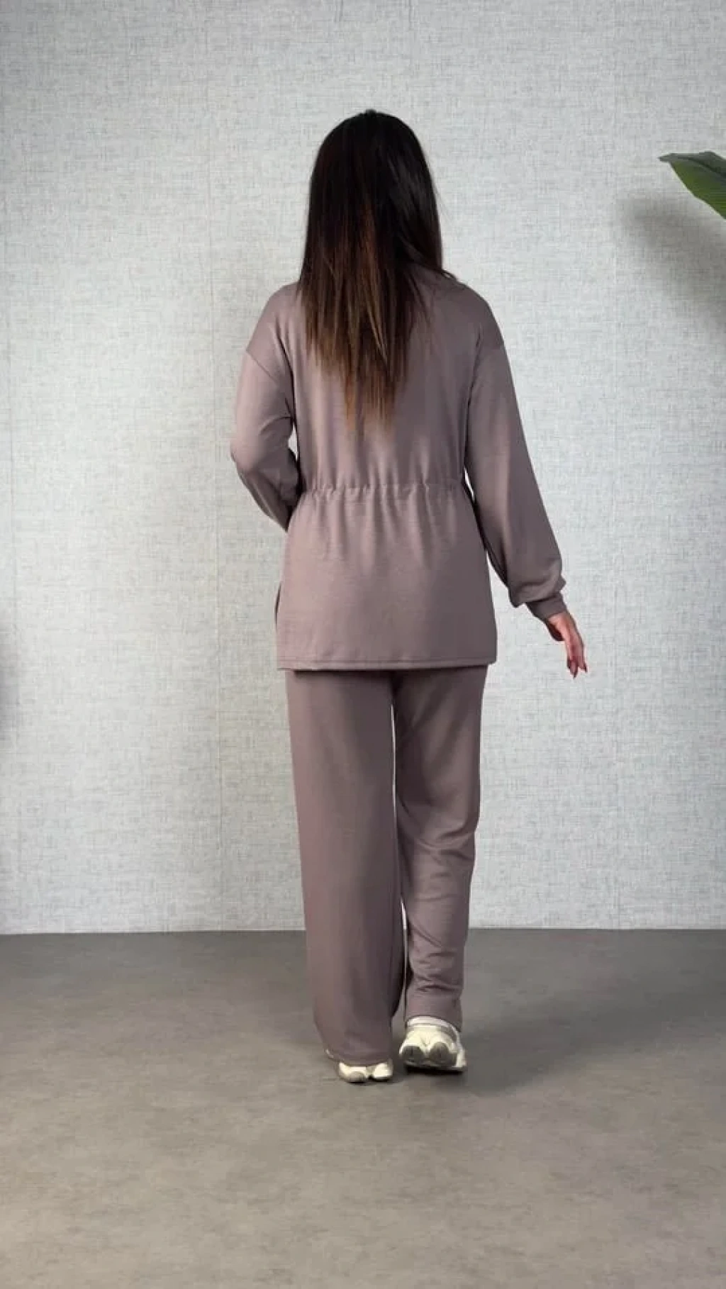 Kadın Uzun Kollu Yaka Ve Büzgü Detay Tunik Ve Pantolon Ikili Takım