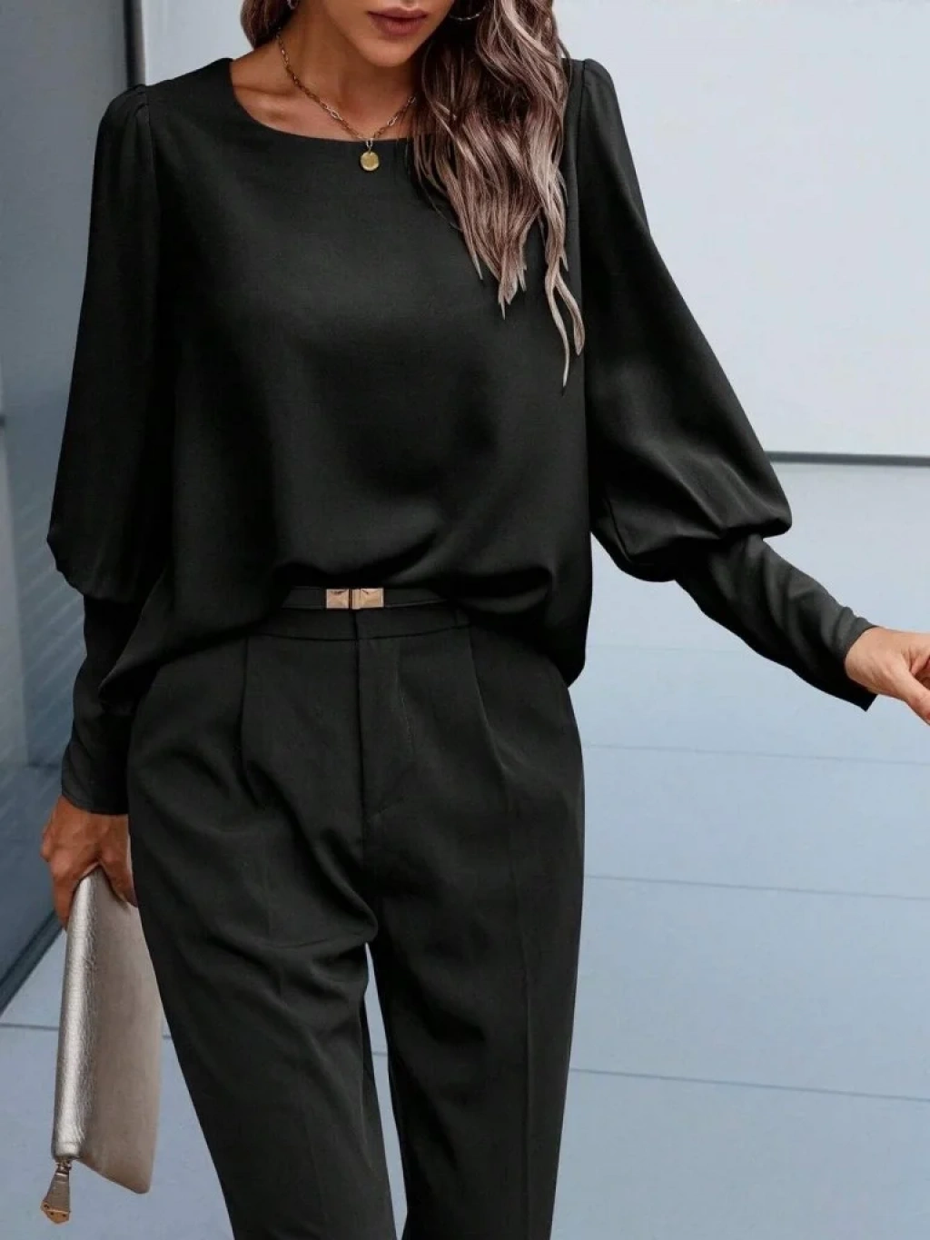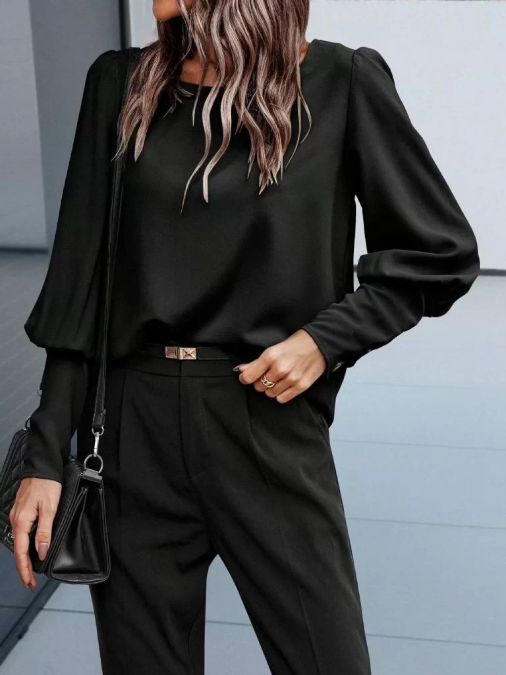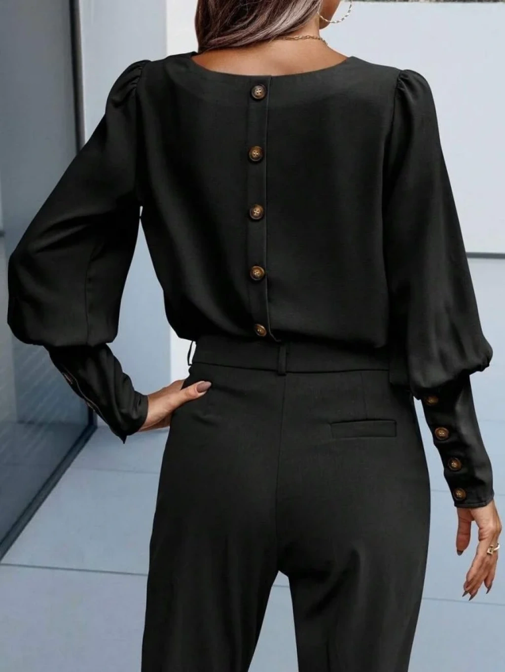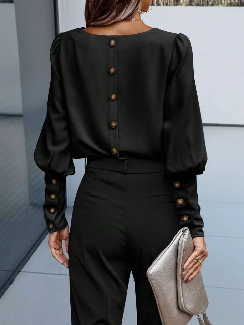 Kadın Uzun Kollu Yuvarlak Yakalı Düğmeli Ithal Krep Bluz