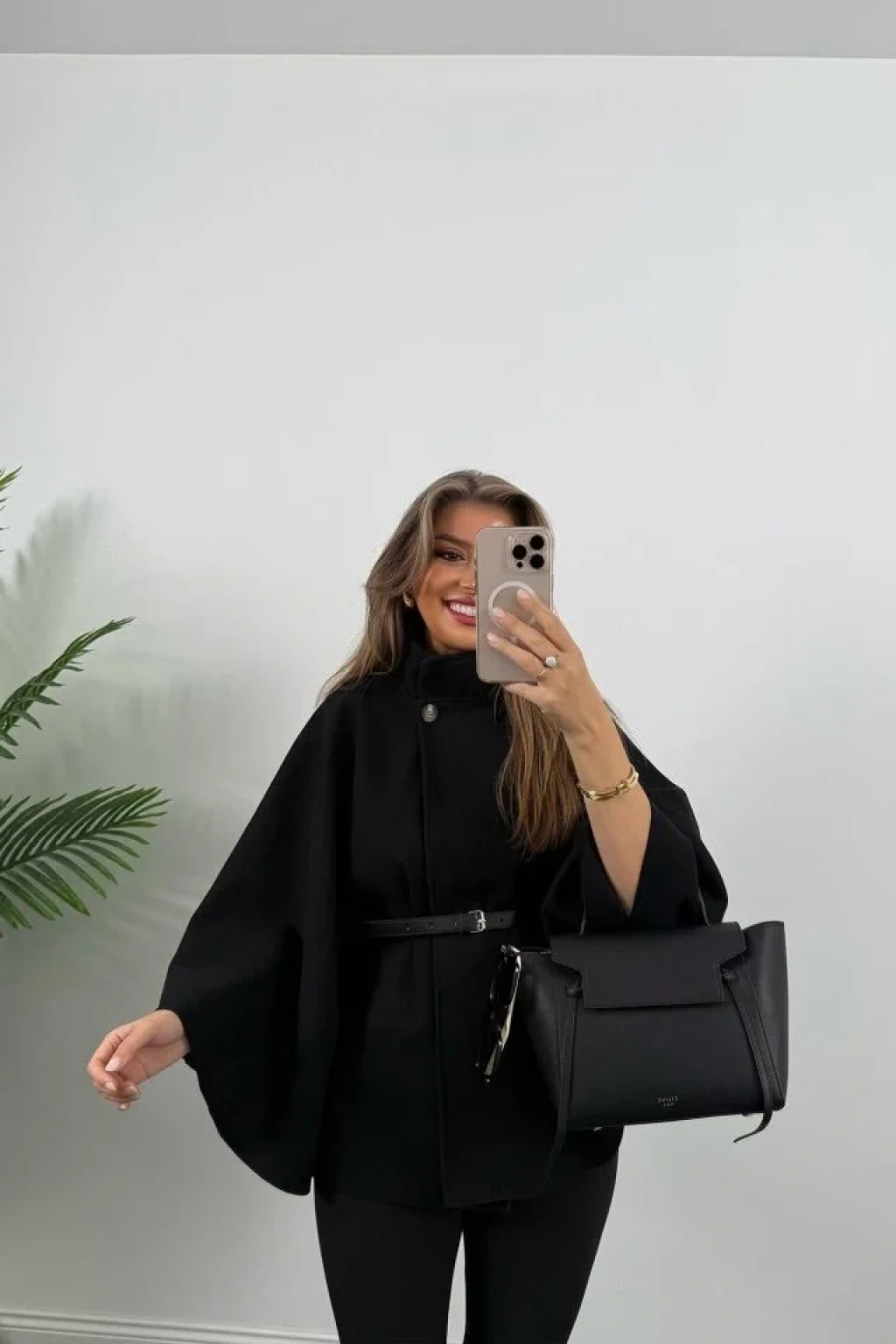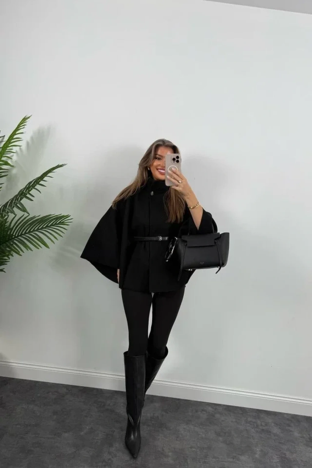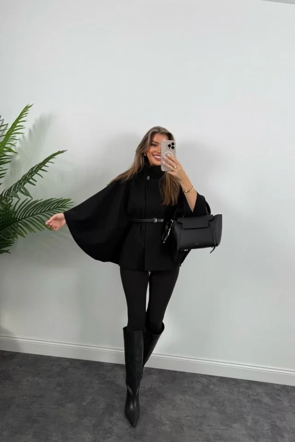 Kadın Yara Kol Balıkçı Yaka Kemer Dahil Kaşe Kaban