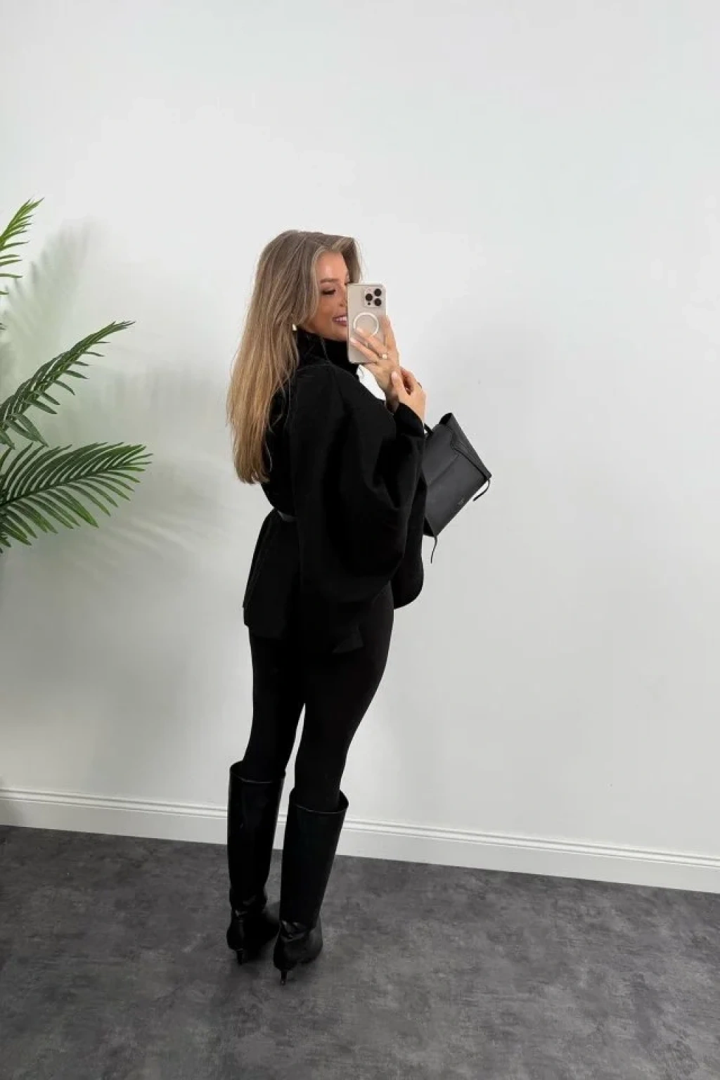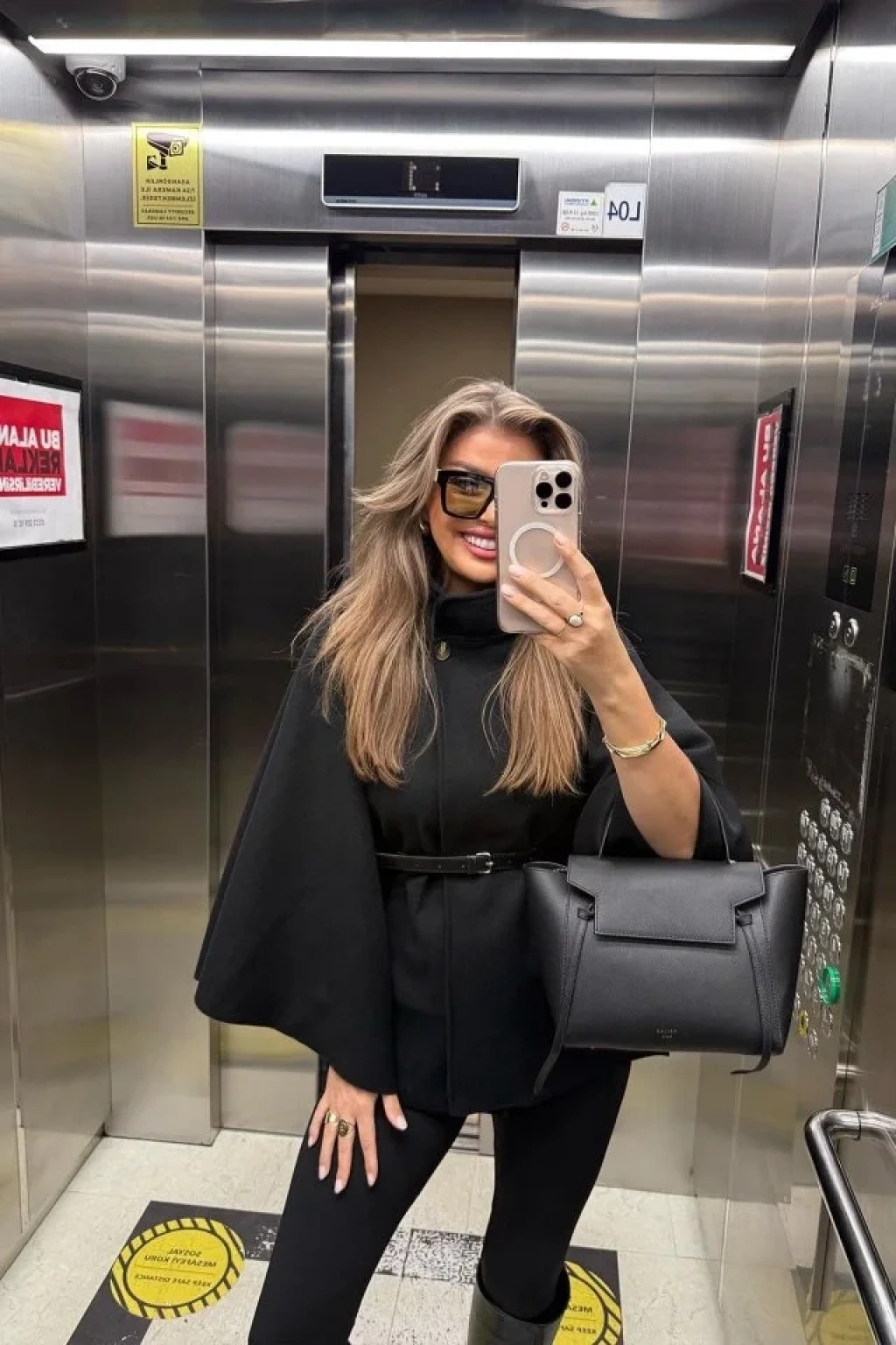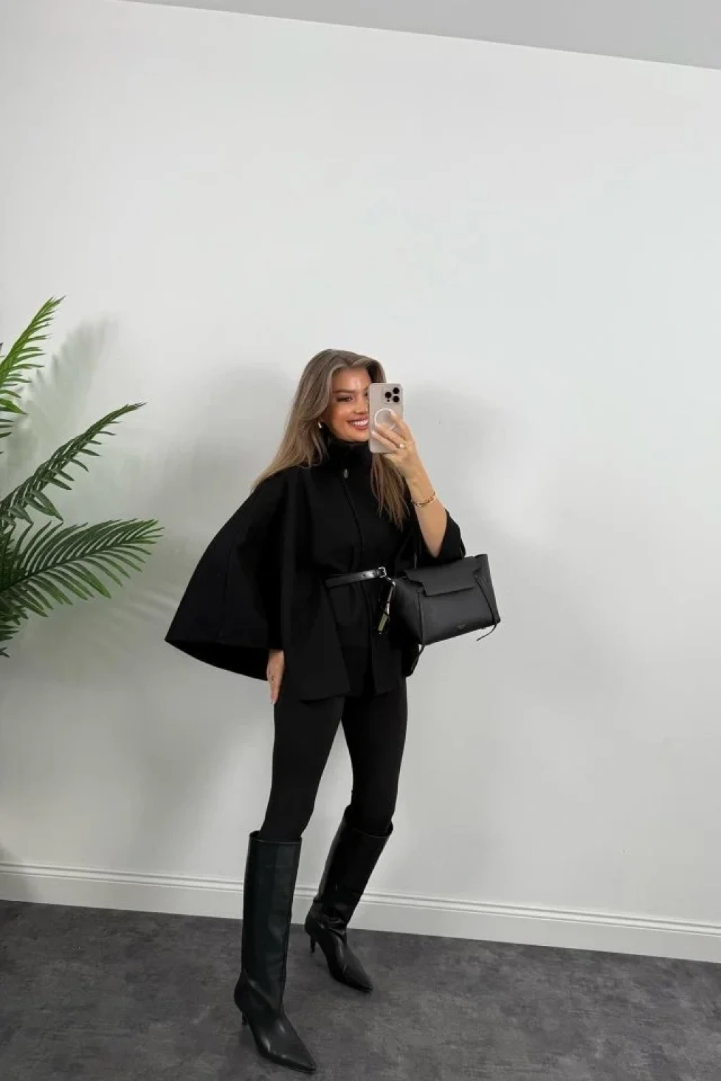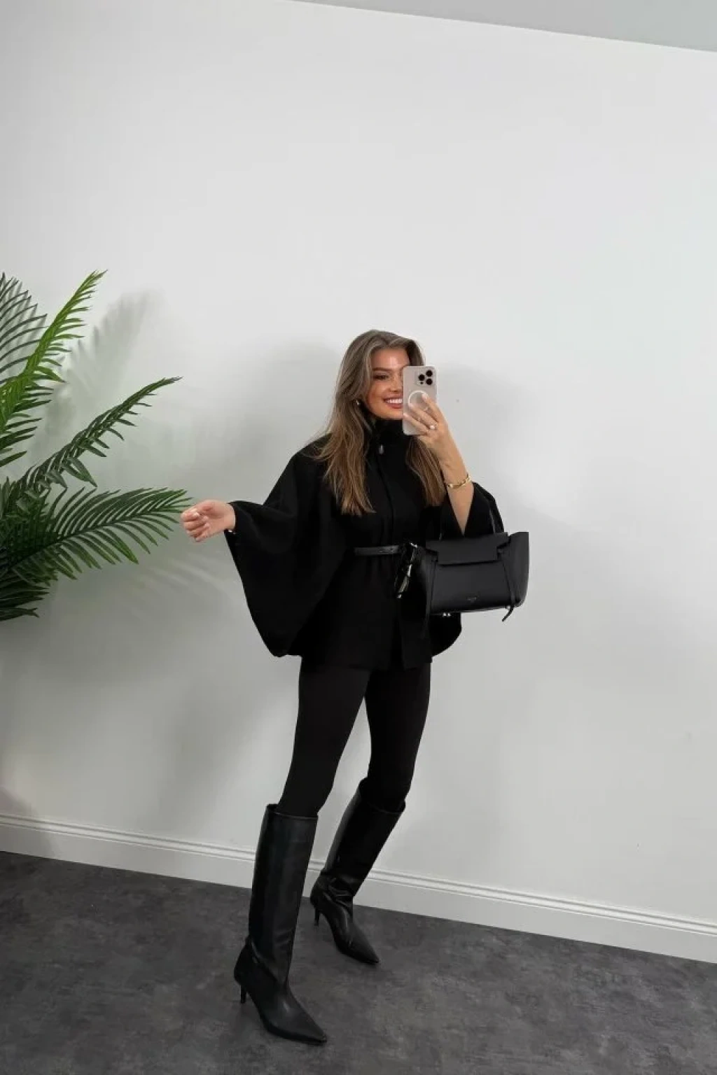 Kadın Yara Kol Balıkçı Yaka Kemer Dahil Kaşe Kaban
