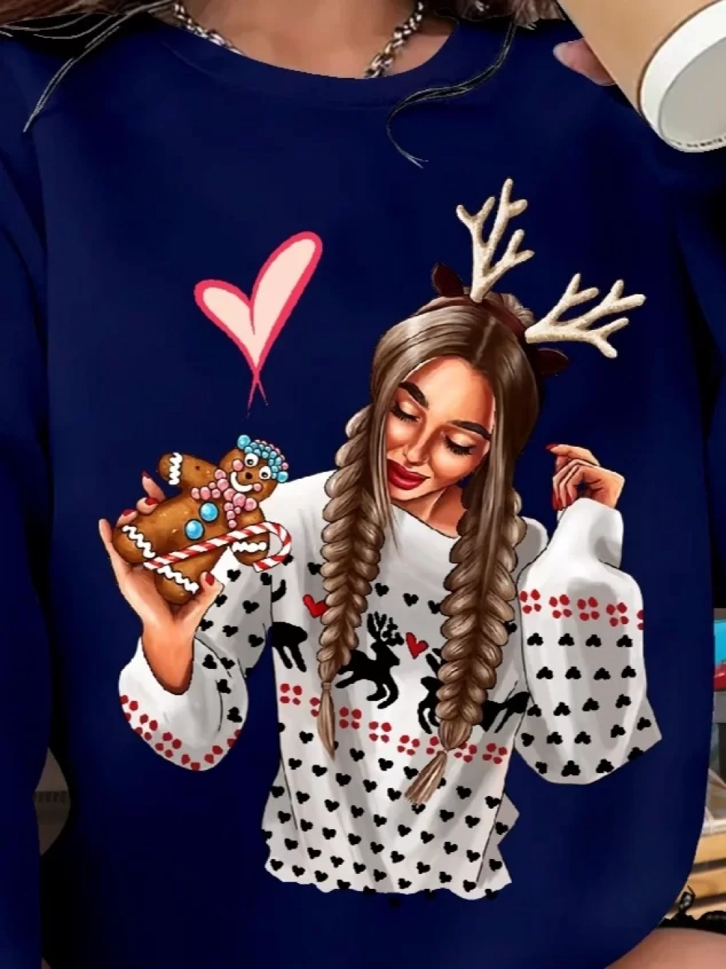 Kadın Yılbaşı özel Uzun Kollu Bisiklet Yaka Desenli Viskon Iki Iplik Bluz