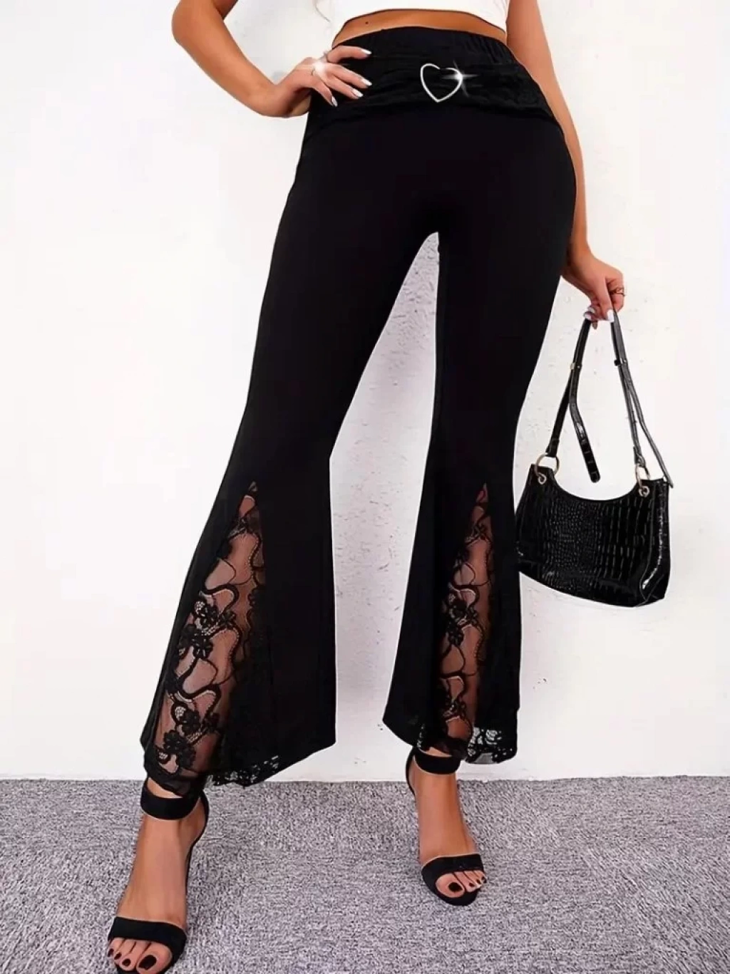 Kadın Yüksek Bel Kalpli Kemer Dantel Detaylı Dalgıç Pantolon